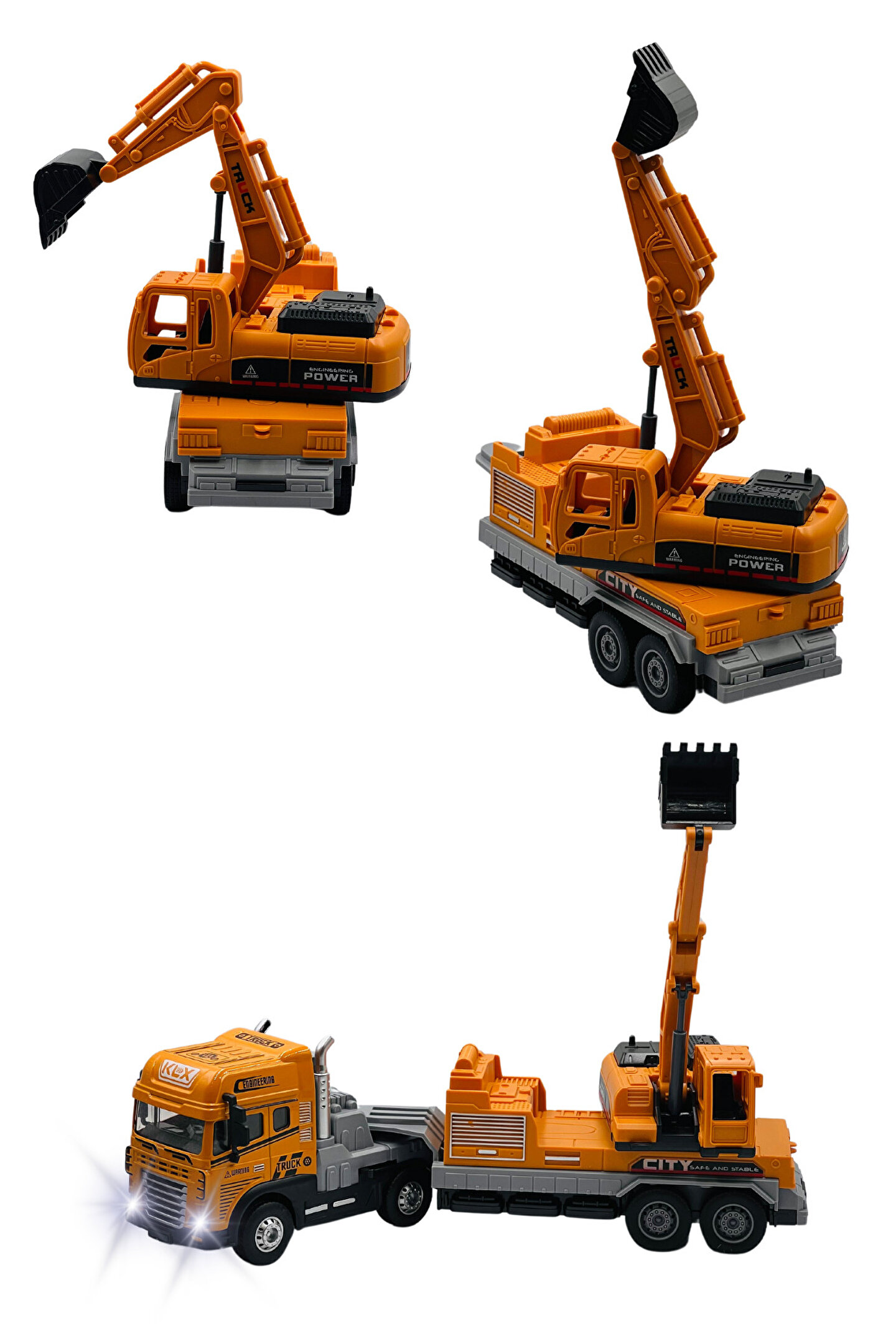 Renkli ve Gerçekçi Tasarım :Canlı renkler ve detaylı tasarım, oyuncakları daha ilgi çekici hale getirir. Gerçek iş makinelerinden esinlenerek hazırlanmış detaylar, çocukların oyunlarına gerçekçilik katar.