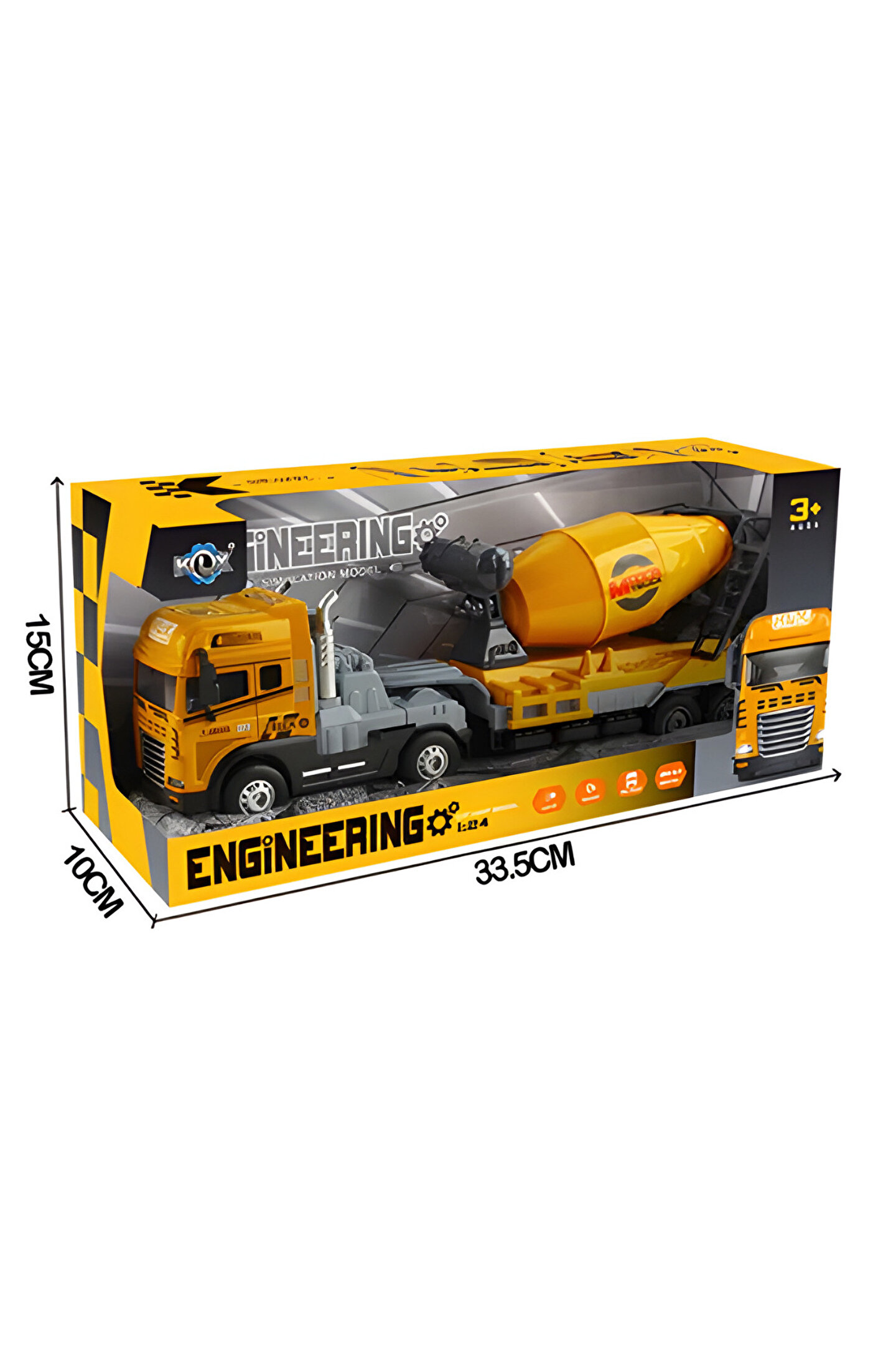 welcomein Oyuncak Kutulu İş Makinesi Sesli Işıklı Çek Bırak Metal Vinç, Beton Mikseri, Kamyon, Kepçe 30 Cm