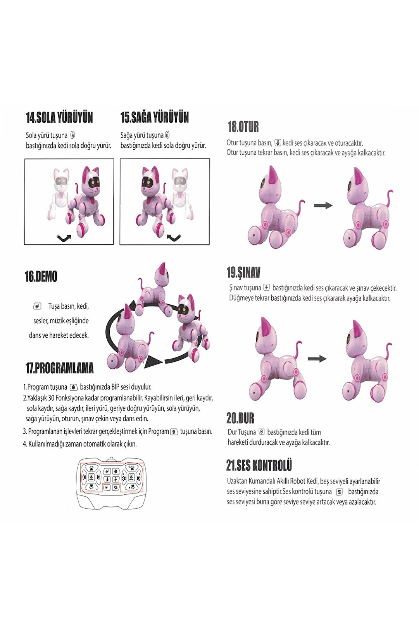 , Oyuncak robot kedi veya köpek olarak tasarlanmış bu akıllı cihaz, çocukların hayal gücünü geliştirmek için idealdir.; - LED ışıkları sayesinde gece de eğlencenizi kesintiye uğratmayacak şekilde aydınlatma özelliği bulunmaktadır.; - Uzaktan kumanda ile kontrol edilebilen bu robot, çocukların motor becerilerini ve el-göz koordinasyonunu destekler.; - Piller kutuya dahildir; böylece ekstra pil satın alma derdine son verirsiniz.; - 3 yaş ve üzeri çocuklar için uygun olan bu ürün, küçük yaştaki kullanıcıların güvenliği düşünülerek tasarlanmıştır.; - Vardem tarafından üretilen bu robot, kaliteli malzemelerden yapılmış olup dayanıklılığıyla öne çıkar.; - İki adet parça içeren paketiyle gelen bu robot, kolayca monte edilebilir ve pratik bir şekilde kullanılır.; - Oyuncak robotunuzu kullanırken herhangi bir tehlike veya uyarı belirtisi bulunmadığından emin olabilirsiniz.; - Çok renkli tasarımına sahip olan bu robot, her türlü oyun alanına canlılık katmak için mükemmel bir seçenektir.; - Priz tipinin belirtilmediği bu robotun enerji ihtiyaçlarını karşılamak için evdeki standart prizleri kullanmanız yeterlidir.; - Çocukların eğlenmesi için tasarlanmış olan bu robot, onların ilgisini çekecek interaktif özelliklere sahiptir.; -Kumanda sinyalleri karışabileceğinden iki ürün aynı anda çalıştırılmamalıdır.
