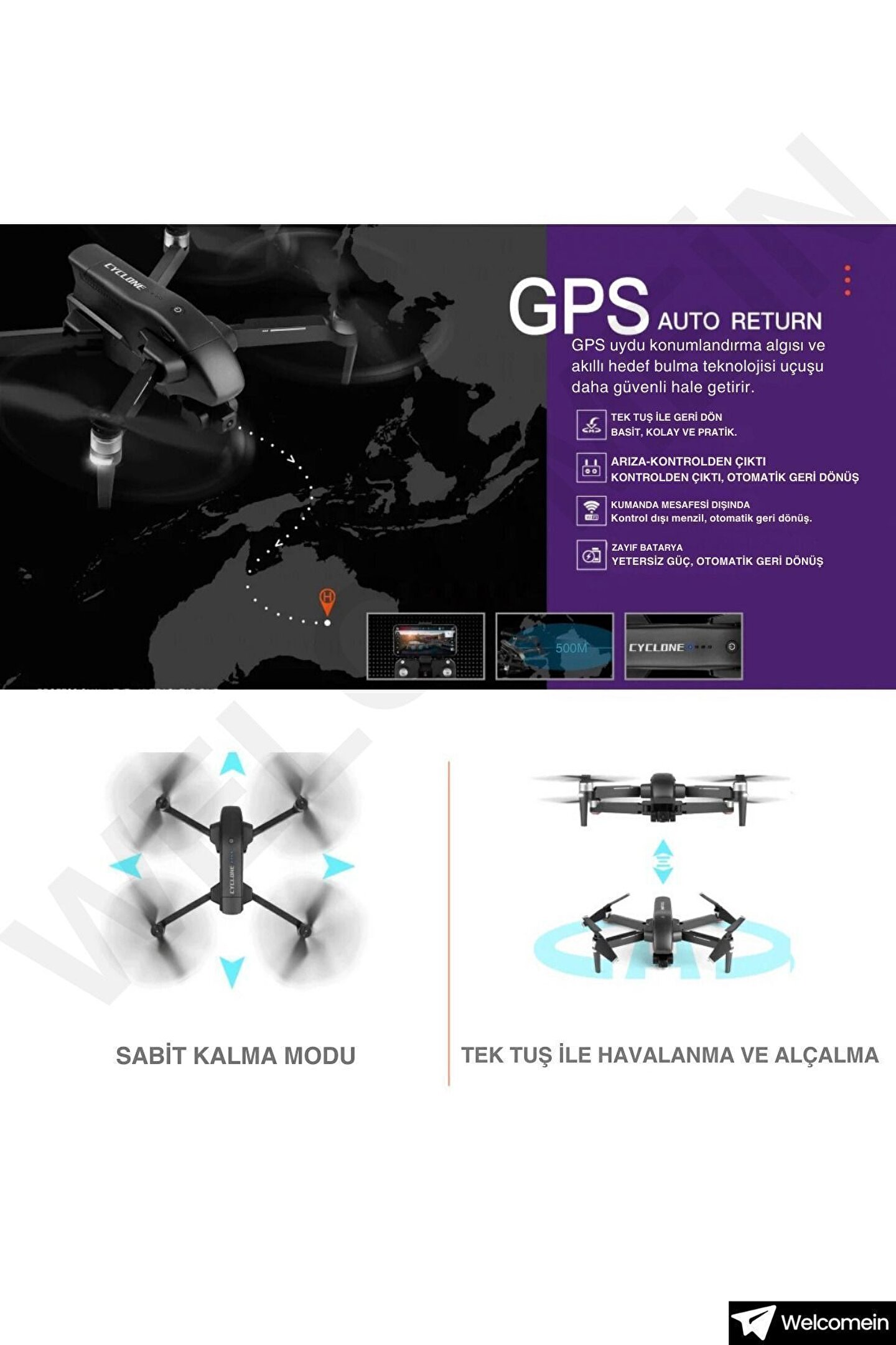 - Beni takip et modu sayesinde, drone'unuzu kontrol etmek için sürekli manuel müdahaleye gerek kalmadan, uçuş sırasında istediğiniz rotayı takip edebilirsiniz; - 30 ila 40 dakika arasında değişen uçuş süresi ile uzun süreli ve kesintisiz bir kullanım deneyimi sunar; - GPS özelliği ile konumunuzu hassas bir şekilde belirleyebilir ve drone'unuzu kolayca yönlendirebilirsiniz; - Sivil havacılık izni gerektirmeyen yapısı, yasal sınırlamalar olmadan özgürce uçuş yapmanızı mümkün kılar;