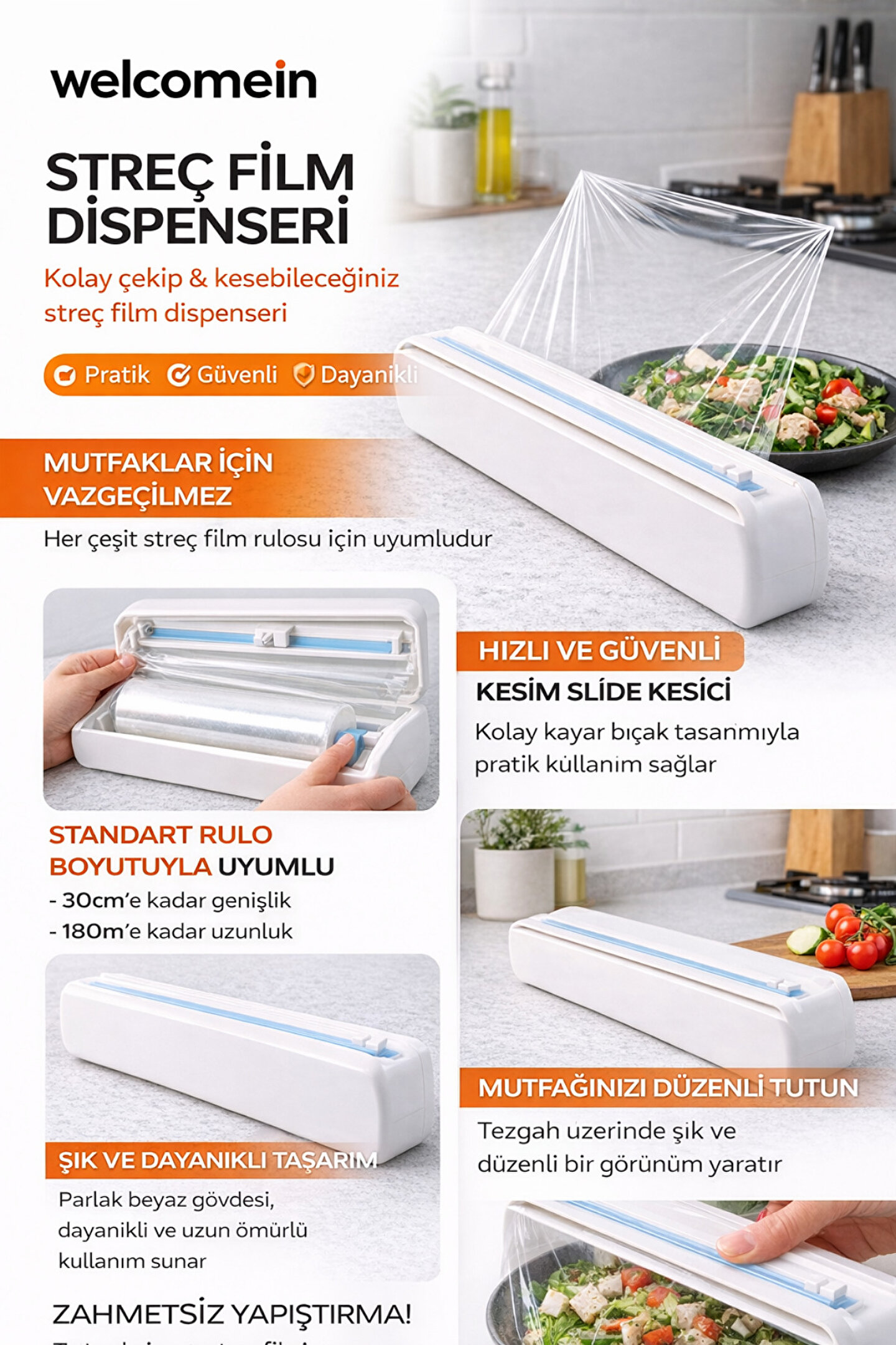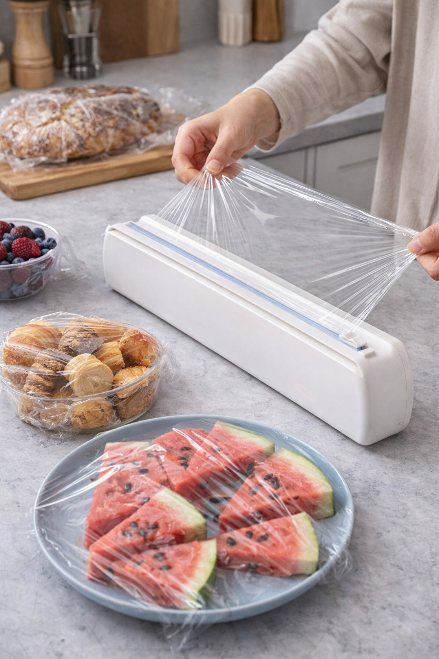 Streç filmi kolayca çekin, kayar kesici ile zahmetsizce kesin.
