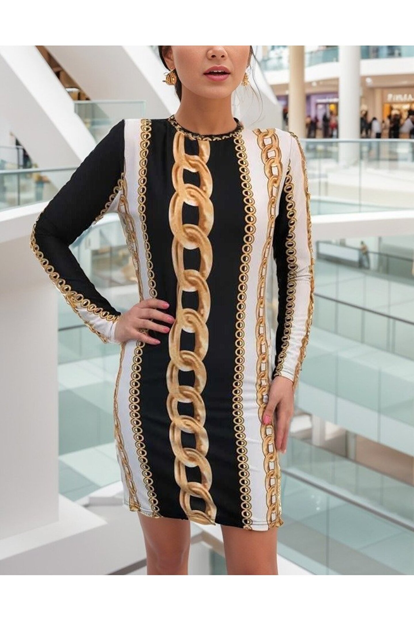 Kadın Uzun Kollu Bisiklet Yaka Scuba Midi Boy Elbise
