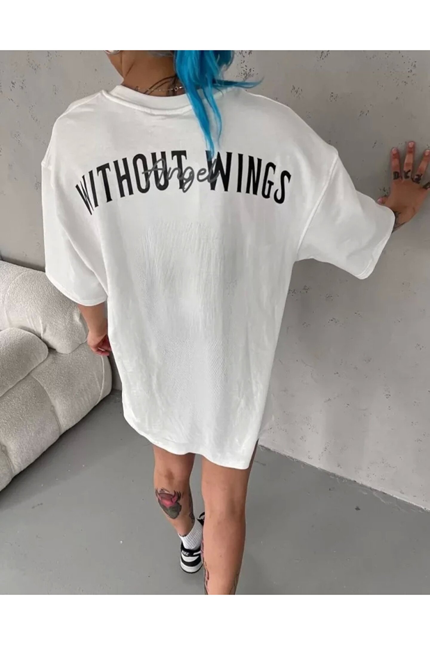 Wheat Butik Unisex Bisiklet Yaka Baskılı Oversize Thirt Beyaz