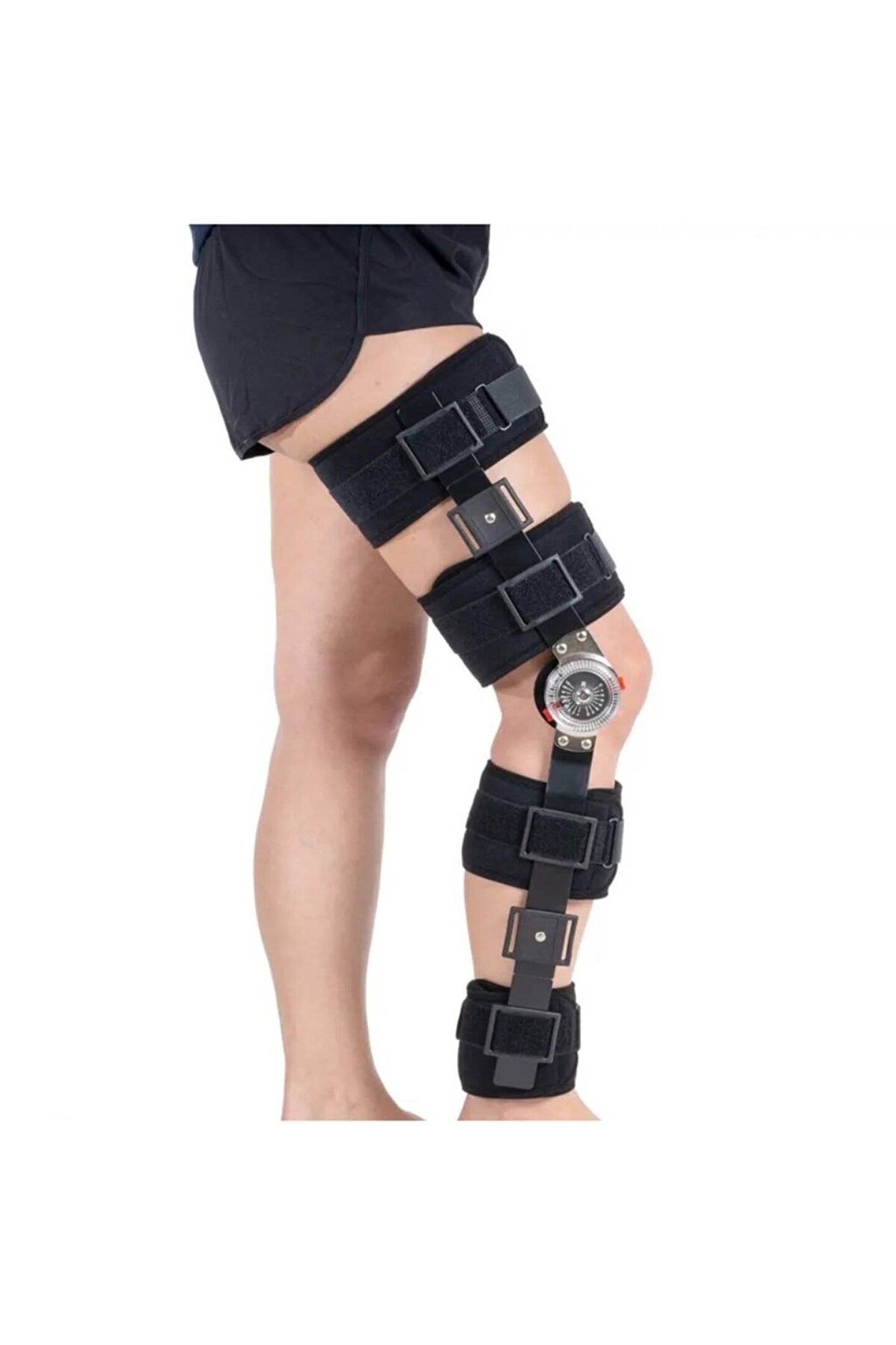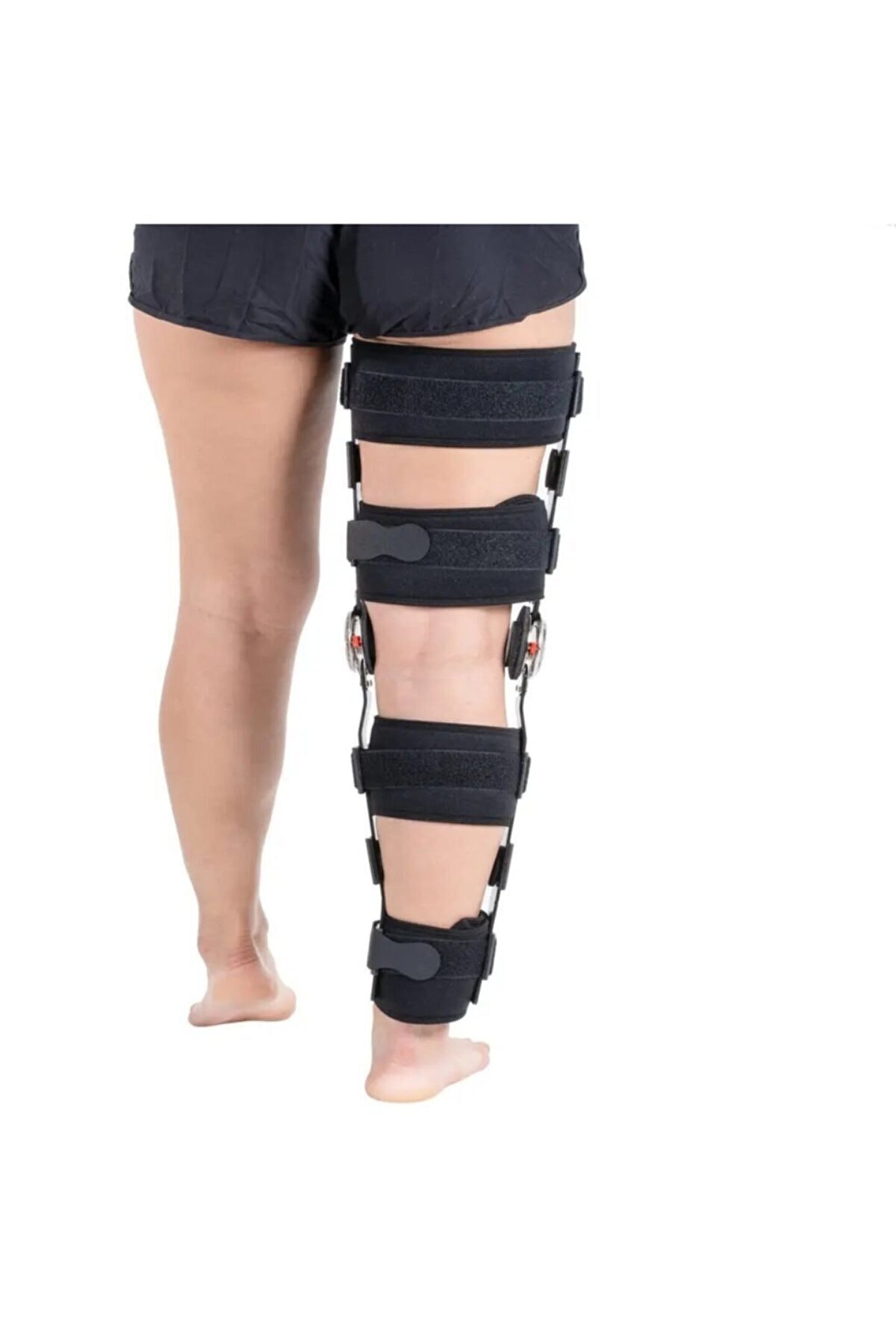 W515(Uzun) Açı Ayarlı Dizlik (Uzun) Anatomik bacak şekline uygun olarak tasarlanmış alüminyum bar ve cilde temas eden yüzeyleri havlu kumas olan derece ayarlı diz ortezidir. Fleksiyon (0°, 15°, 30°, 45°, 60°, 75°, 90°, 105°, 120°) ve ekstansiyon (-15°, 0°, 15°, 30°, 45°, 60°, 75°, 90°) derece ayarı yapılır. Diz yaralanmaları sonrası mükemmel bir stabilizasyon ve destek sunar. Ameliyat ve travma sonrası rehabilitasyon döneminde koruyucu olarak kullanılır ve dizin R.O.M. kontrolünü sağlar. Kısa ve uzun olarak 2 boyu vardır. Endikasyonları Bağ yaralanmalarında ameliyat sonrası kontrollü ve dereceli eklem mobilizasyon; Menisküs yaralanmalarinda ameliyat sonrası; Cerrahi operasyon sonrası istenilen açıda hareketsiz istirahatte; Diz rekurvatum hasarlarında; Stabil femür kırıkları; BEDEN UNIVERSAL SIZE