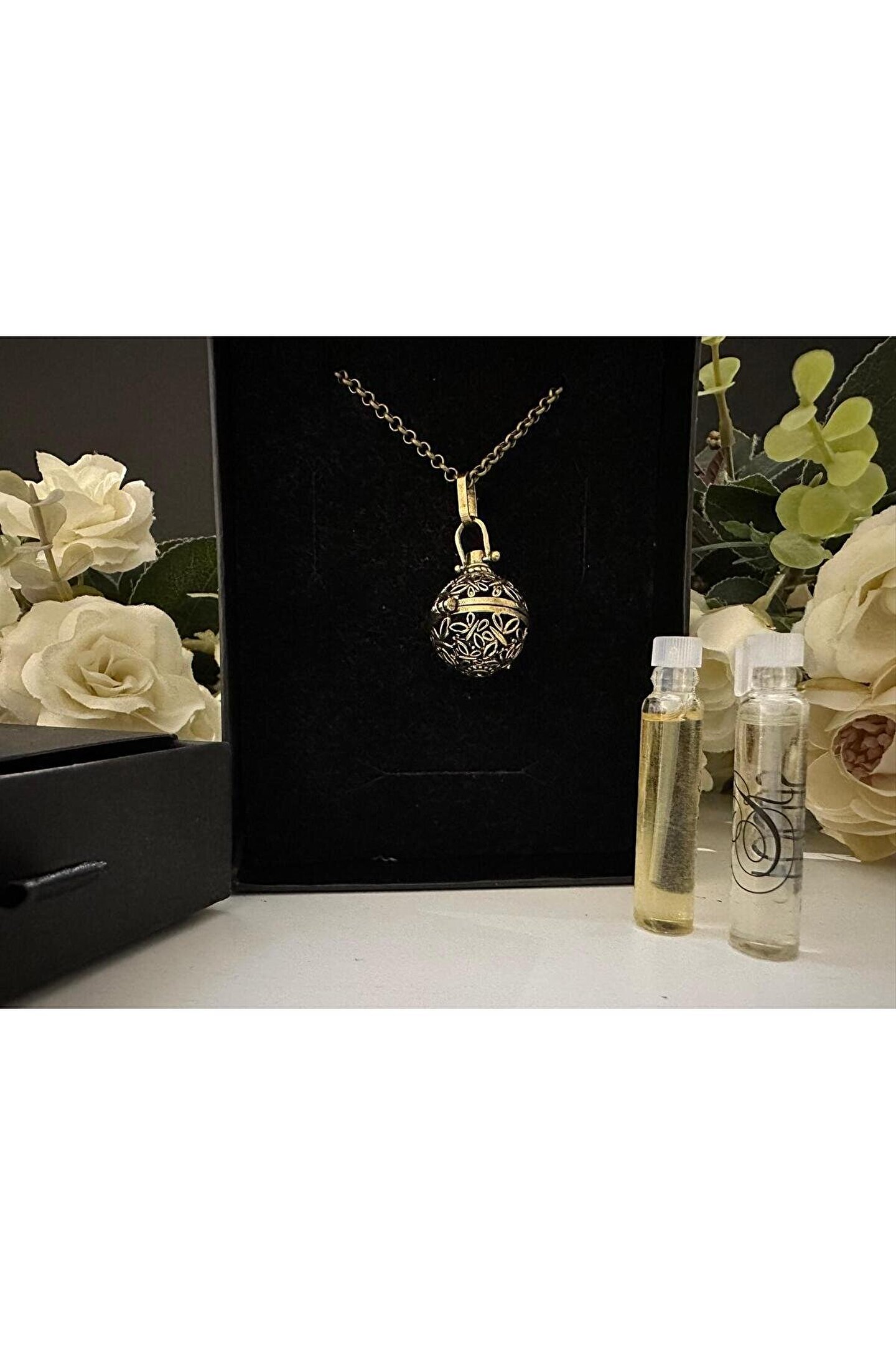 Aromaterapi kolyesi uçucu yağ parfüm diffüzör kolye Aromaterapi kolyeleri çok eski çağlardan bu yana süs eşyası ve çeşitli amaçlar için kullanılmış olan özel takılardır.; Bir süs eşyasının zenginlik ve zerafeti ile ,içinde bulundurulan doğanın gücü bitkilerin saf uçucu yağlarının yüzyıllardır kullanılan Etkilerini bir araya getirir.; Üzerinizde taşıyacağınız aromaterapi kolyelerinin her Biri bir anlam taşıyan zarif tasarımlardan oluşmaktadır.; Içindeki keçe topa damlatacağınız aromaterapi yağları ise sizler için özel olarak hazırlanmış olup, doğanın büyülü gücünü gün boyunca yanınızda hissetmenizi sağlayacaktır.; Dilerseniz kullandığınız parfümü de kolyeniz içinde gün boyu değişmeden ısı ve nemden etkilenmeden ve giysilerinize temas etmeden kullanabilirsiniz.; Sizlere beğeneceğinizi umduğumuz bir konsantre parfüm de hediye olarak gönderiyoruz.; Lavanta yağı 2ml : Lavandula angustifolia bitkisinin çiçeklerinden distilasyon yoluyla elde edilmiş %100 doğal uçucu yağdır.; Aromaterapide rahatlatıcı, kaygı ve gerginlik azaltıcı, ağrı azaltıcı, uyku kalitesini artırıcı, ve doğal böcek savar özellikleri nedeniyle kullanılmaktadır.; Duygusal ve fiziksel iyilik hali için destekleyici özelliktedir.; Kesinlikle tıbbi tedavi yerine geçmez.; Gebe ve çocuklarda kullanımı için mutlaka hekiminize danışmanız önerilir.