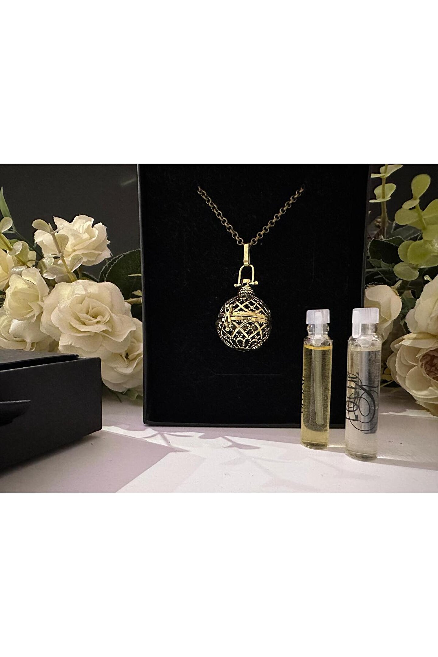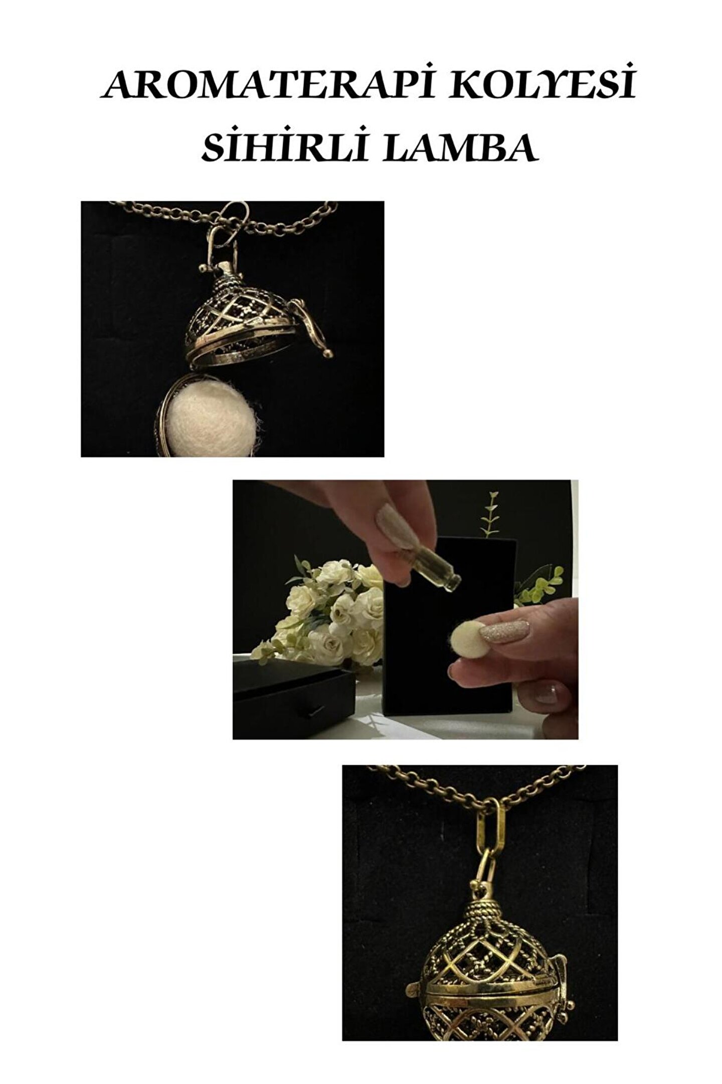 Aromaterapi kolyesi uçucu yağ parfüm diffüzör kolye Aromaterapi kolyeleri çok eski çağlardan bu yana süs eşyası ve çeşitli amaçlar için kullanılmış olan özel takılardır.; Bir süs eşyasının zenginlik ve zerafeti ile ,içinde bulundurulan doğanın gücü bitkilerin saf uçucu yağlarının yüzyıllardır kullanılan Etkilerini bir araya getirir.; Üzerinizde taşıyacağınız aromaterapi kolyelerinin her Biri bir anlam taşıyan zarif tasarımlardan oluşmaktadır.; Içindeki keçe topa damlatacağınız aromaterapi yağları ise sizler için özel olarak hazırlanmış olup, doğanın büyülü gücünü gün boyunca yanınızda hissetmenizi sağlayacaktır.; Dilerseniz kullandığınız parfümü de kolyeniz içinde gün boyu değişmeden ısı ve nemden etkilenmeden ve giysilerinize temas etmeden kullanabilirsiniz.; Sizlere beğeneceğinizi umduğumuz bir konsantre parfüm de hediye olarak gönderiyoruz.; Lavanta yağı 2ml : Lavandula angustifolia bitkisinin çiçeklerinden distilasyon yoluyla elde edilmiş %100 doğal uçucu yağdır.; Aromaterapide rahatlatıcı, kaygı ve gerginlik azaltıcı, ağrı azaltıcı, uyku kalitesini artırıcı, ve doğal böcek savar özellikleri nedeniyle kullanılmaktadır.; Duygusal ve fiziksel iyilik hali için destekleyici özelliktedir.; Kesinlikle tıbbi tedavi yerine geçmez.; Gebe ve çocuklarda kullanımı için mutlaka hekiminize danışmanız önerilir.