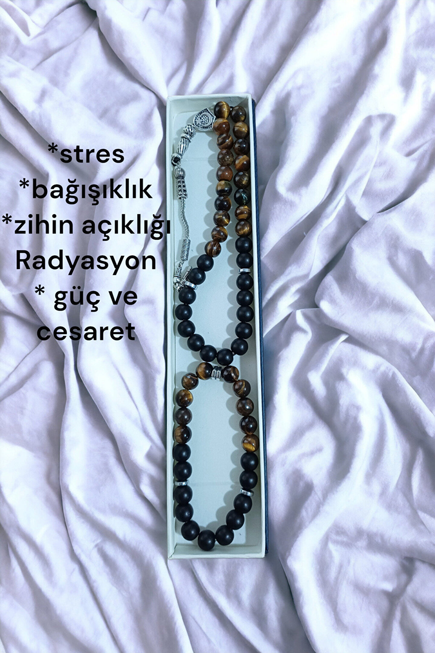 Gençlerin enerjisine ve stiline uyum sağlayan tasarımıyla, her yaştan kullanıcıya hitap eder; Doğal taş kullanımı sayesinde, her bileklik benzersiz ve otantik bir görünüm sunar; Kaplangözü ve siyah turmalin taşların eşsiz kombinasyonu, zarif ve modern bir aksesuar deneyimi vaat eder;