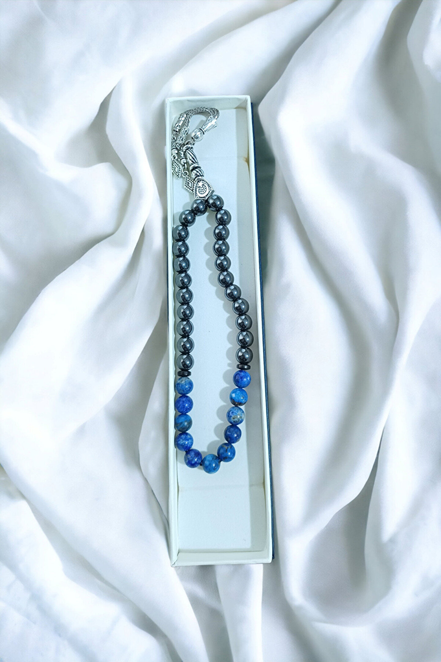 Gençlerin enerjisine ve stiline uyum sağlayan, doğal taşlardan oluşan bu bileklik, günlük kullanım için idealdir; Lapis ve hematit gibi değerli taşların eşsiz dokunuşuyla tasarlanmış, her kıyafetle kolayca kombinlenebilen bir aksesuar; Doğal taş materyali sayesinde her bileklik benzersizdir ve her kullanımda farklı bir görünüm sunar;