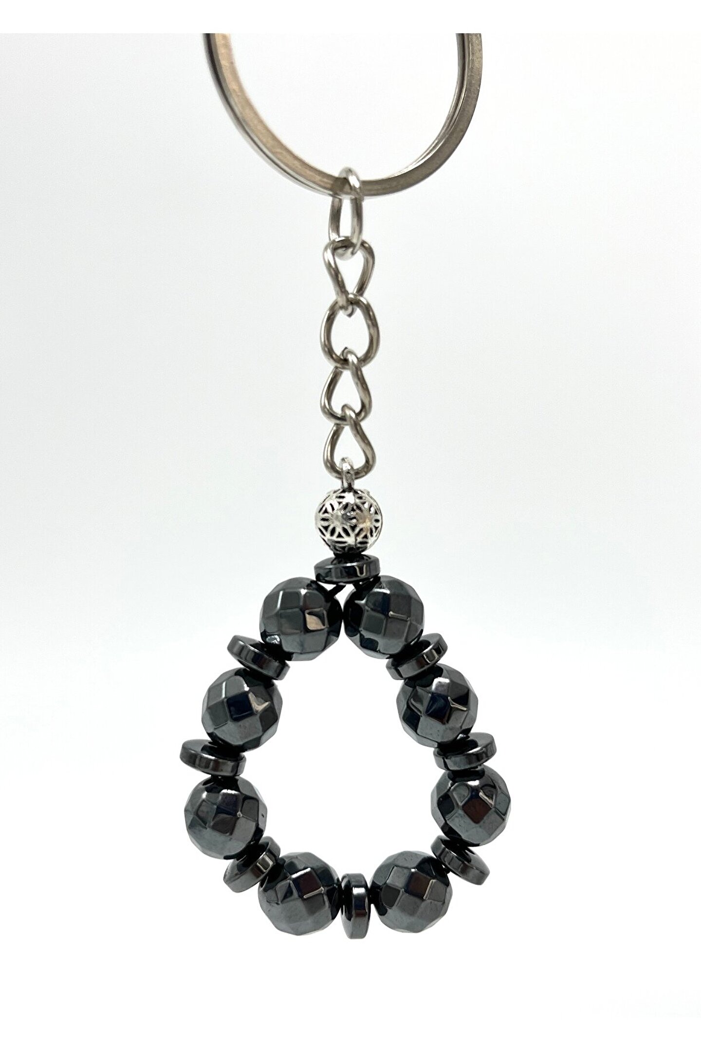 YILDIZ DOĞAL TAŞ SERTİFİKALI Fasetli Hematit Doğal Taş Anahtarlık 8mm