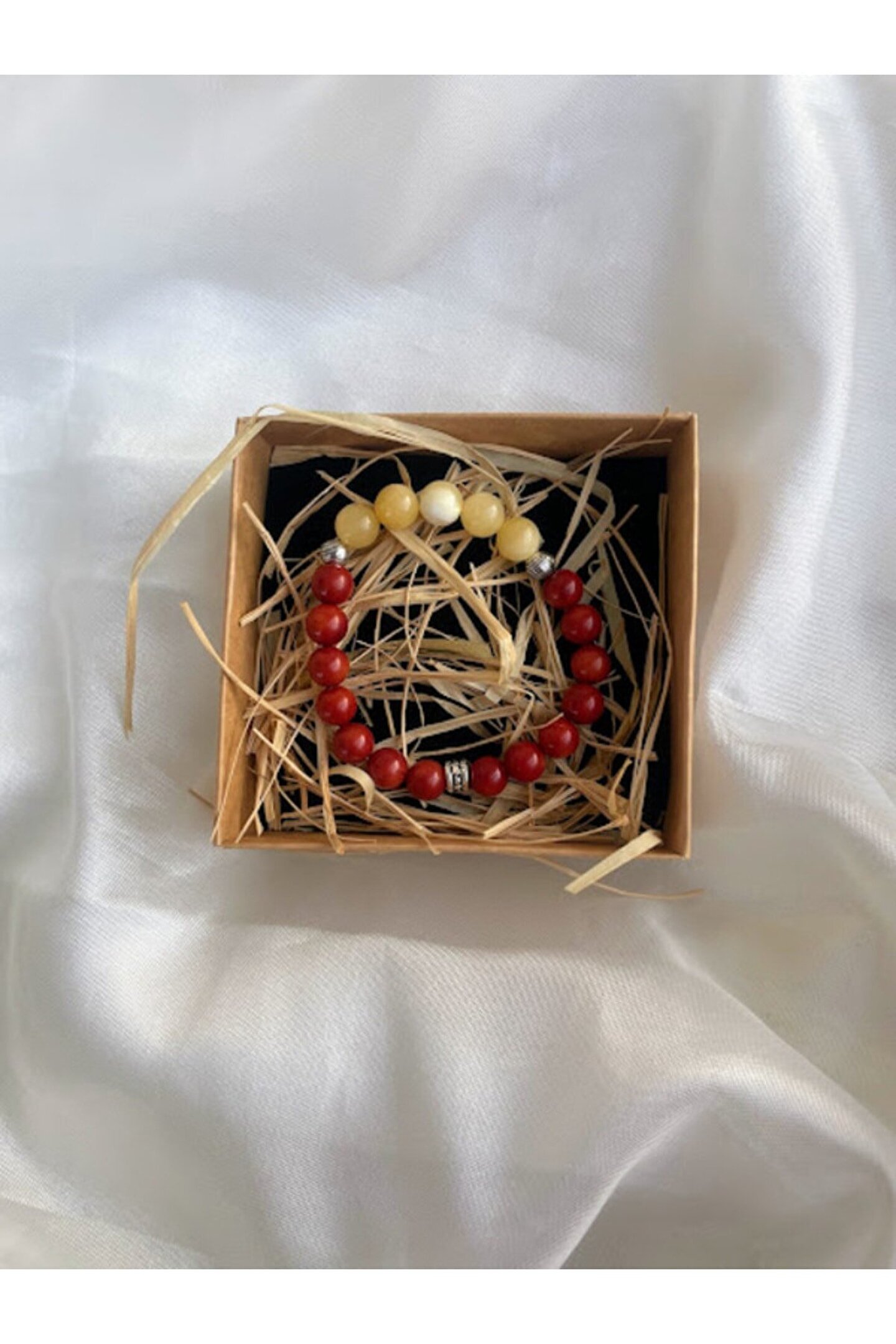 Bu üründe kullanılan doğal taş: Mercan-Kalsit .. bu üründe kullanılan doğal taş boyutu: 8 mm 8 mm Misinali İpli kullanılmıştır. Ürün ile birlikte Yedek misinada gönderilmektedir.
