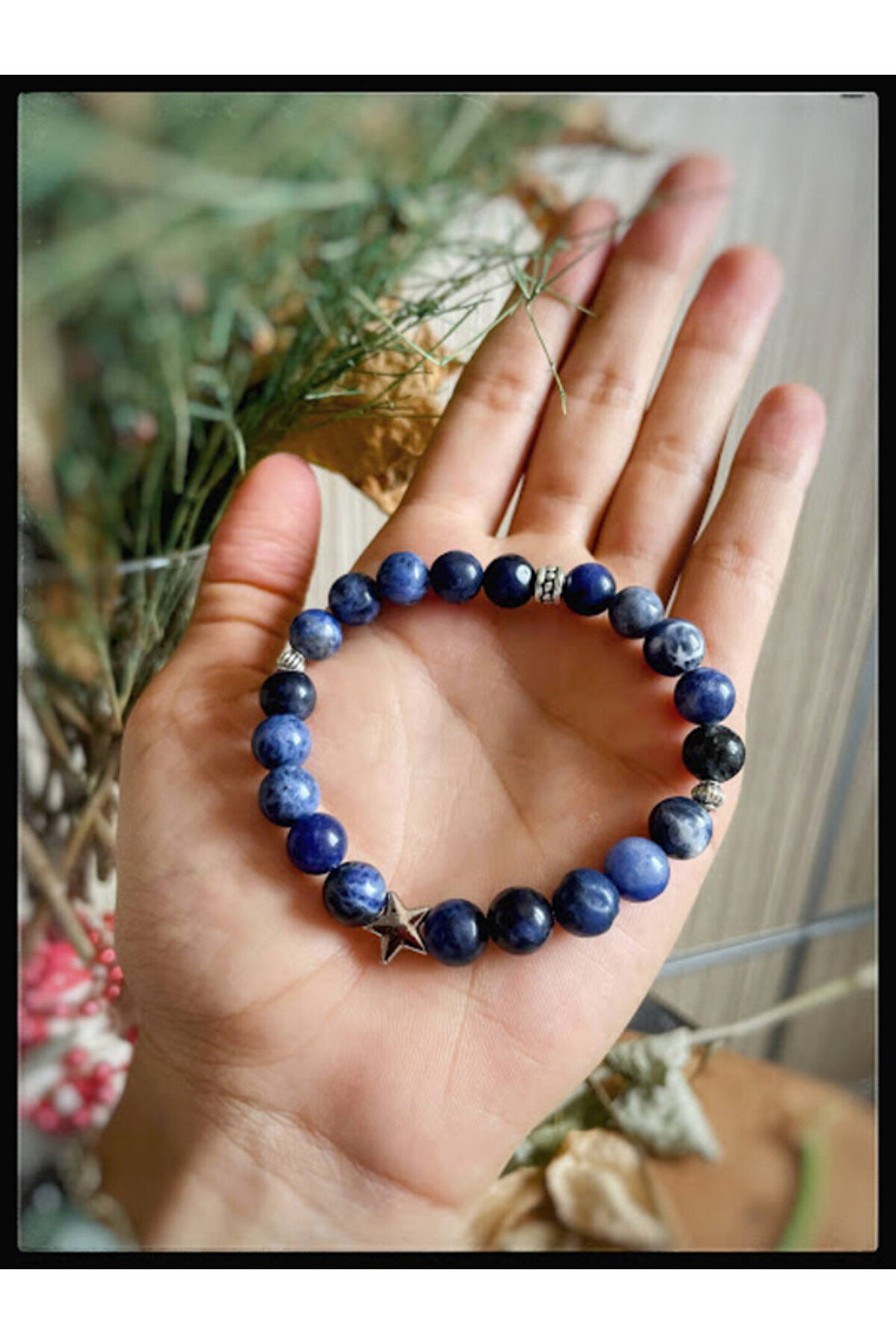 Bu üründe kullanılan doğal taş boyutu: 8 mm Misinali İp kullanılmıştır. ; Ürün ile birlikte Yedek misinada gönderilmektedir. ; Birlikte tasarlamak istediğiniz ürün için bizimle iletişime geçebilirsiniz. ; Unutmayın, bu mağazadaki her şey size özel olacaktır. ; **ÜRÜNLERİMİZ DOĞALTAŞ OLDUĞU İÇİN RENKLERDE FARKLILIK GÖSTEREBİLİR** . ; !!! DOĞALTAŞLAR SADECE TIBBA DESTEK AMAÇLI ŞİFA NİYETİNE KULLANILMALIDIR, TEDAVİ EDİCİ DEĞİLDİ !!! ***SODALİT DOĞALTAŞ BİLEKLİK*** Sodalit ile lapis lazuli genellikle birbirine karıştırılabiliyor. ; Lapis lazuli de civa yoğunluğu biraz daha fazladır. ; Sodalitte yoktur. ; Bu şekilde ayırt edebiliriz. ; -Zihin açıklığı ve zindelik verir. ; -Kişiyi hem bu dünyanın gerçeklerinde tutar, hem de ruhuyla güçlü birbağ kurmasını sağlar. ; -Zihninizdeki gereksiz sesleri susturarak, gereksinim duyduğunuz konuya yoğunlaşmanıza yardım eder. ; Böylece asıl düşüncelerinizin farkına vararak amaçlarınızı belirleyebilirsiniz. ; -Konsantrasyonu artırmak amacıyla kullanılabilir. ; -Zihin açıklığı verir, odaklanmayı kolaylaştırır. ; -Duygularını ve düşündüklerini kolayca ifade edemeyen kişilerin bu taşı boyun bölgelerinde kullanmaları onları rahatlatır. ; Böylece gerginlikleri kaybolur ve kelimeler rahatça ağızlarından dökülür. ; -Bu iyileşmede, düzenli olarak kullanıldığında başarılı sonuçlar elde edilir. ; Eğer çekingen birisiyseniz, bu taşı kalbinize yakın olarak taşıyın. ; Yolculuk sırasında mide bulantısı çekenlere iyi gelir.;