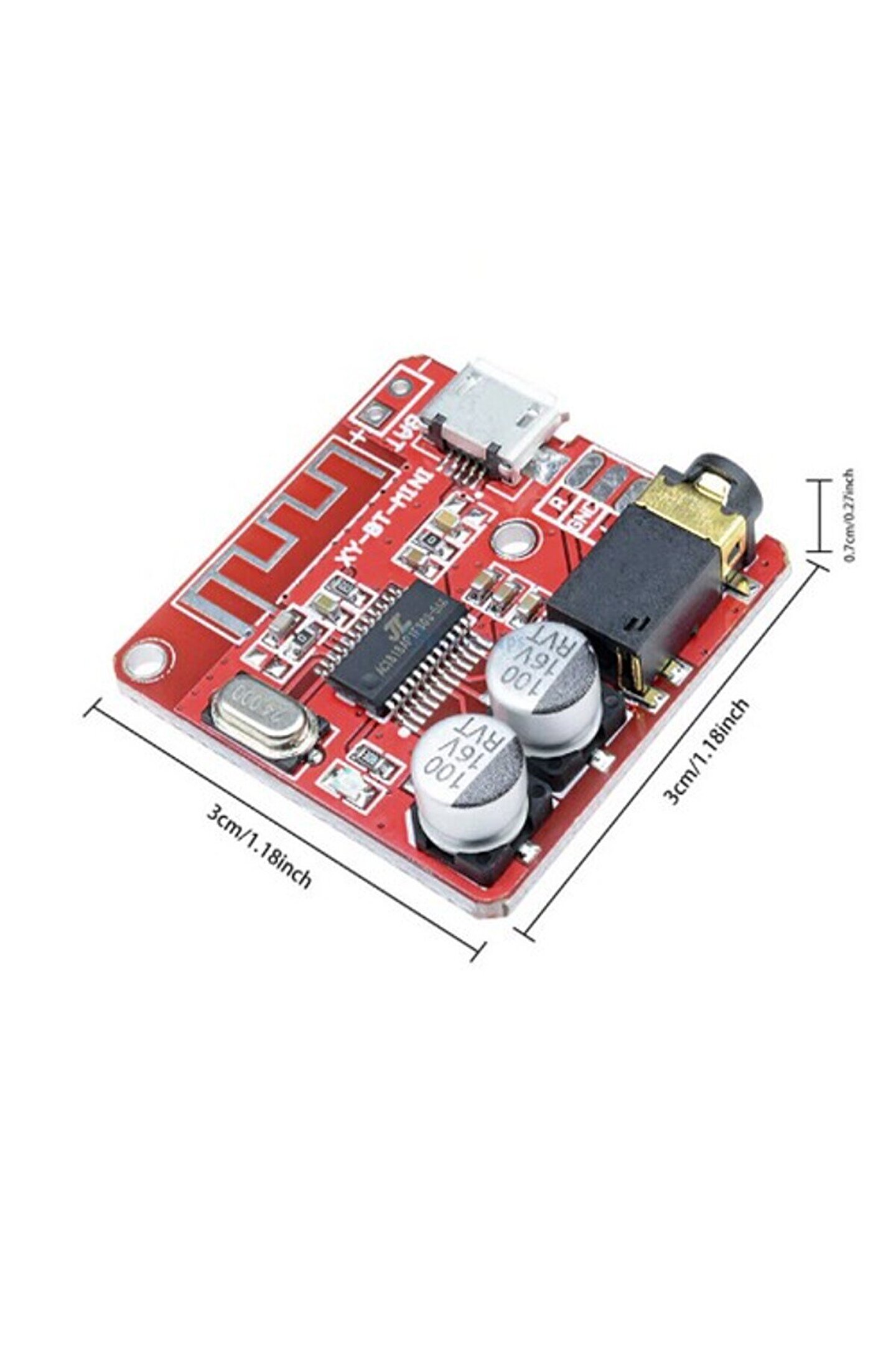 Bluetooth 4.1 Ses Alıcısı Araçlarda ve Anfi Sistemlerinde / Ses Sisemlerinde / Ses Güçlendirici Sistemlerde kullanıma uygundur direk hoparlör baglanılmaz baglarsanız burada ses alamazsınız anfi gibi sesi güçlendiren sistemlere ses taşıyıcısıdır ve Bluetooth kaliteli çekim mesafesi 10metredir açık alanda 15 metreye kadar çıksada 10 metre sonra ses kalitesi bozulur parazit ve kesinti oluşur Beklentilerinizi lütfen açıklamara dikakt ederek yapın ihtiyacınızı karşılamayan bir ürün alarak ifraf etmeyin. Özellikler: Güç kaynağı 3.7-5 V SNR 90dB THD + N -70dB Karışma -86dB DNR 91dB Destek profili A2DP/AVCTP/AVDTP/AVRCP/HFP LOS > 15 m Arayüz Detayları: USB powered Üniversal mikro usb 5 V güç kaynağı 3.7-5 V besleme pedi Harici 3.7-5 V lityum pil gücü dönüşümü LED göstergesi Bluetooth modu uzun mavi ışık 3.5mm stereo ses arabirimi Standart 3.5mm arayüzü, çıkış stereo ses kaynağı, kulaklık takın, amplifikatörler ve diğer cihazları bağlayın Talimatlar: Güç açıldıktan sonra, mavi gösterge yanar ve Bluetooth moduna girer; İngilizce “bluetooth cihazı eşleştirmeye hazır” görüntülenir, bluetooth moduna girildiğini ve eşleştirmeyi beklediğini belirten; cep telefonu Bluetooth tarafından aranan “XY _ BT”, kod çözme kartının cihaz adıdır., Bağlantıya tıklayın, dekoder kartı "bluetooth cihazı başarıyla bağlanır", kod çözücü kartının ve cep telefonunun başarıyla bağlandığını, müzik çalabileceğinizi gösterir. Paket İçeriği: 1 adet Bluetooth 4.1 Ses Alıcısı Kurulu Kablosuz Müzik Modülü