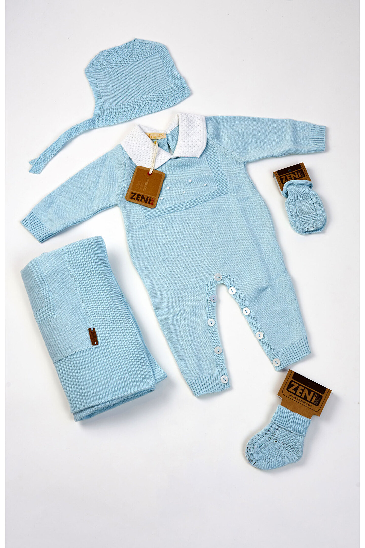 ZENİ BABY Yeni Doğan 5li Örme Triko Tulum Set (Özel Kutulu)