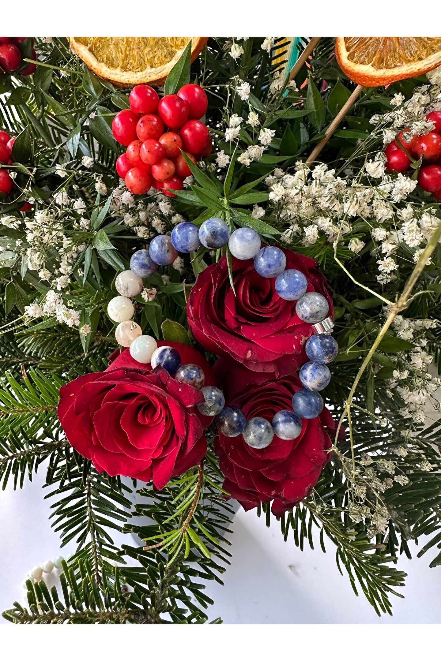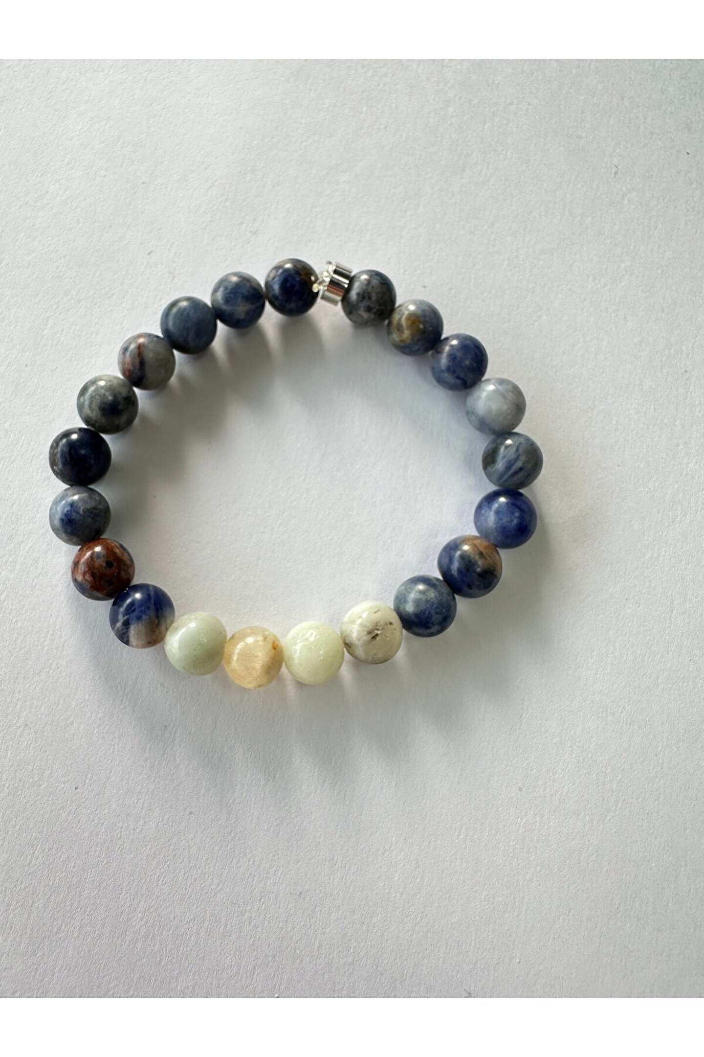 ZS Aksesuar Öğrenci Bilekliği ,Amozonit ve Sodalit Çakra Bileklik ,Doğaltaş bileklik