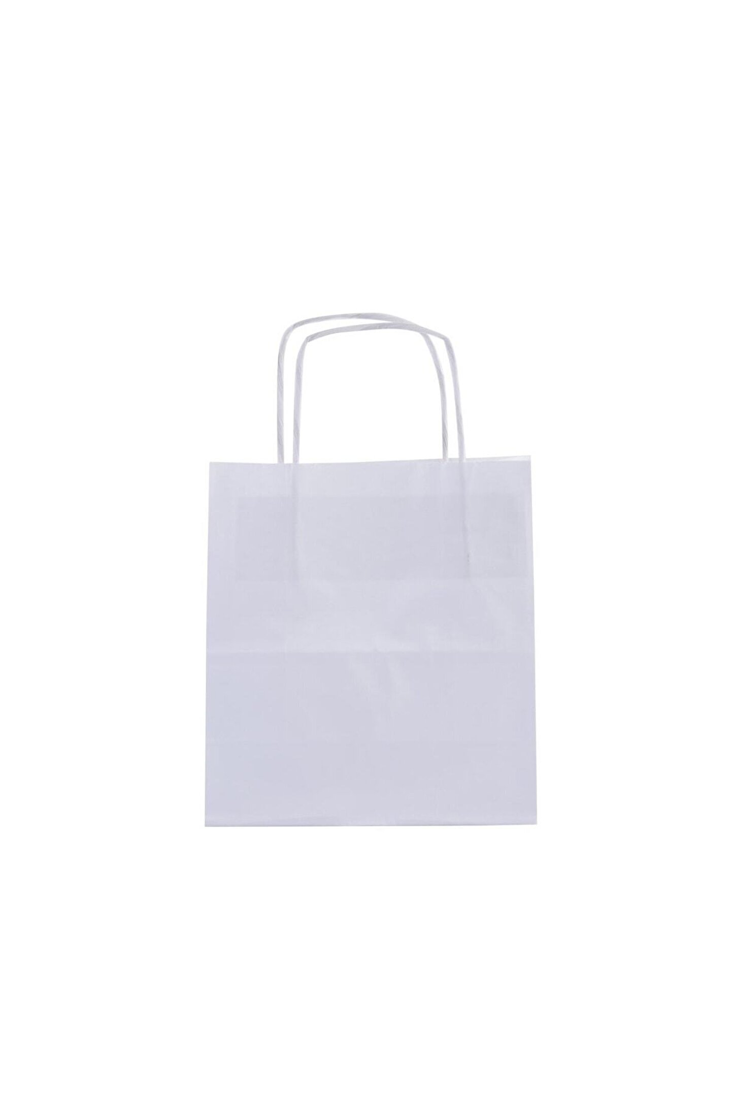 14Süs Büklüm Saplı Beyaz Kağıt Çanta 20x10x22 25li
