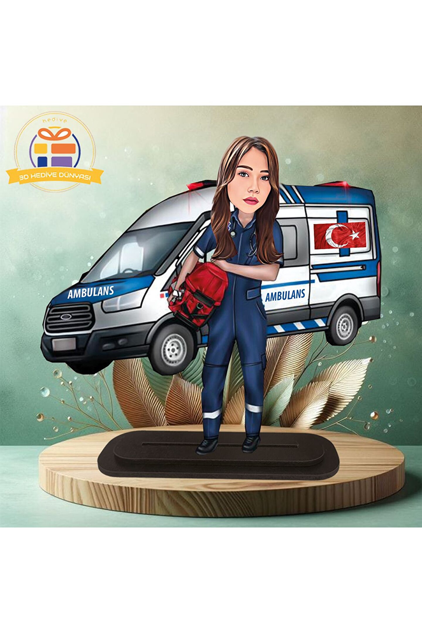 112 acil servis hemşire ambulans karikatürlü biblo hediye 3d masa üstü biblo hediyesi