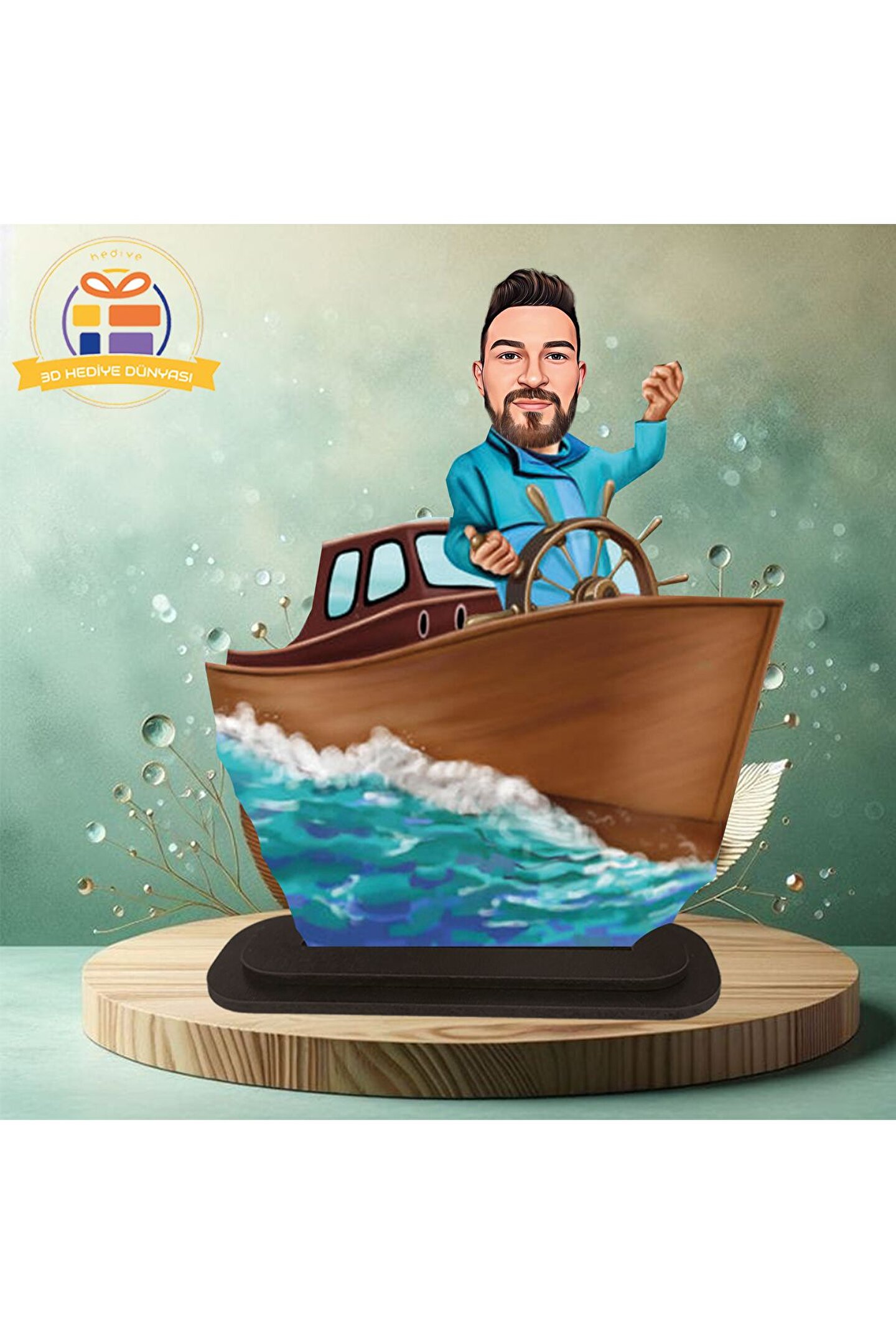 Ahşap teknede denizci karikatürü biblo hediye 3d masa üstü biblo hediyesi