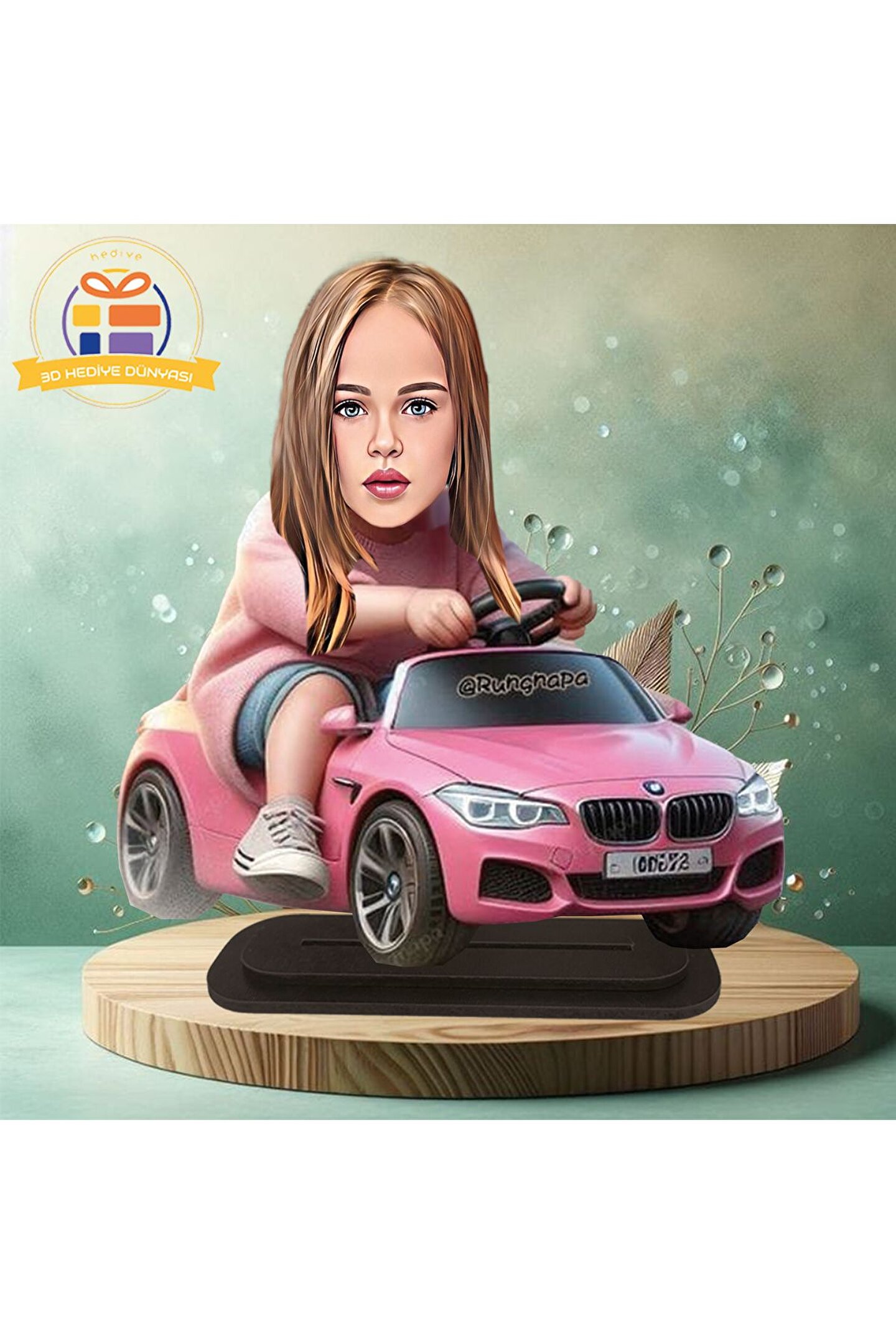 Akülü arabalı kız çocuğu pembe akülü araba karikatürü biblo hediye 3d masa üstü biblo hediyesi