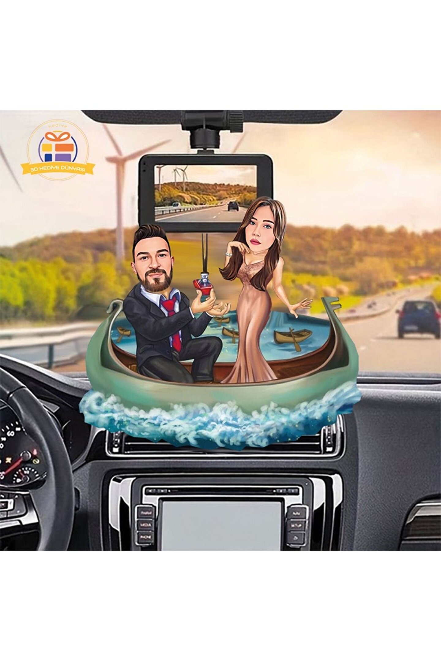 Araba Dikiz ayna süsü Evlilik teklifi kayıkta karikatürlü biblo hediye 3d