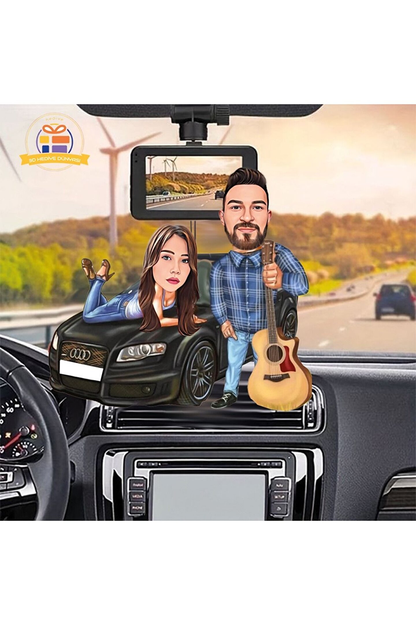 Araba Dikiz Ayna Süsü Gitarlı Ve Erkek Karikatürlü Biblo Hediye