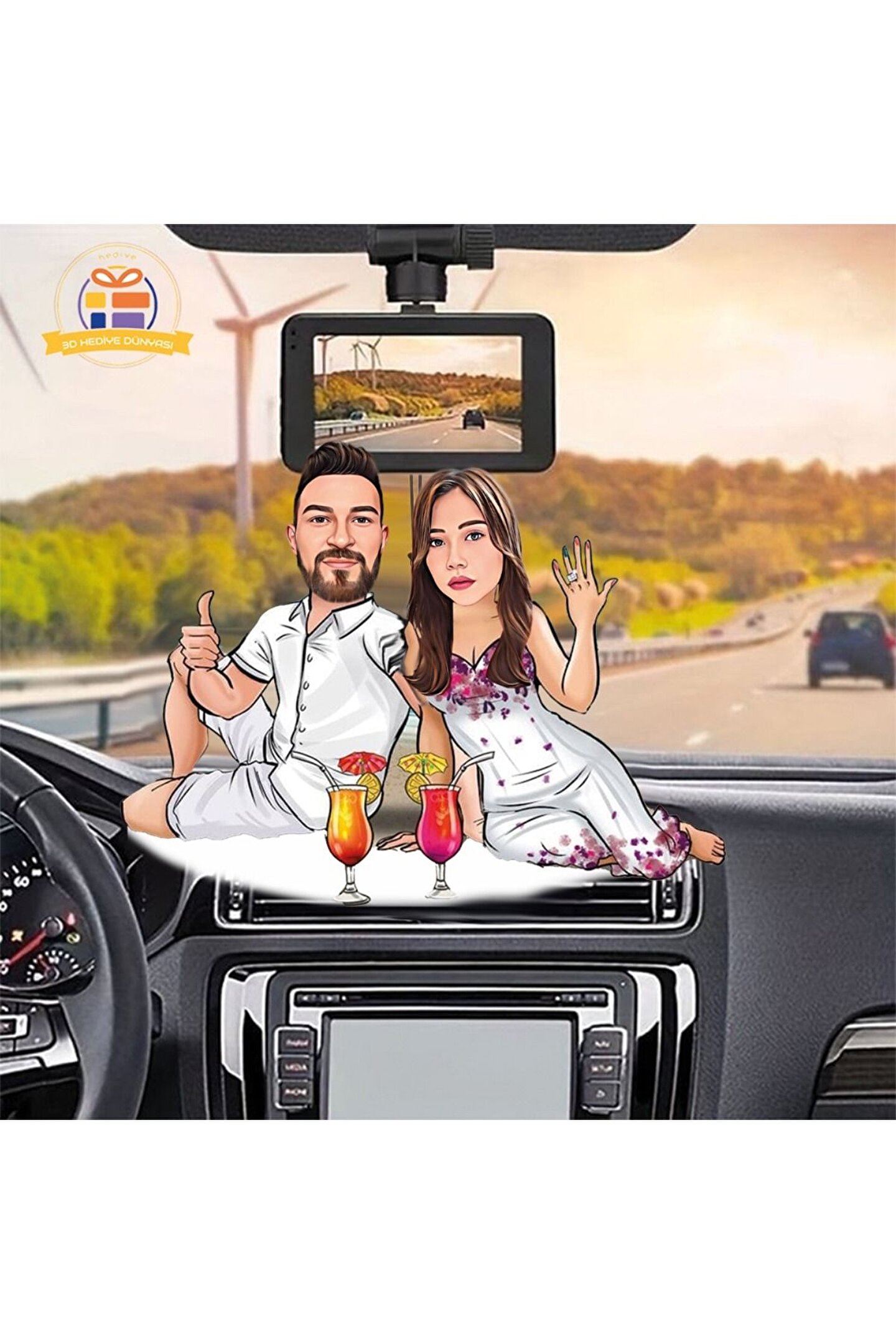 Araba Dikiz ayna süsü Sahil kenarı sevgilimle karikatürlü biblo hediye 3d masa üstü biblo hediyesi