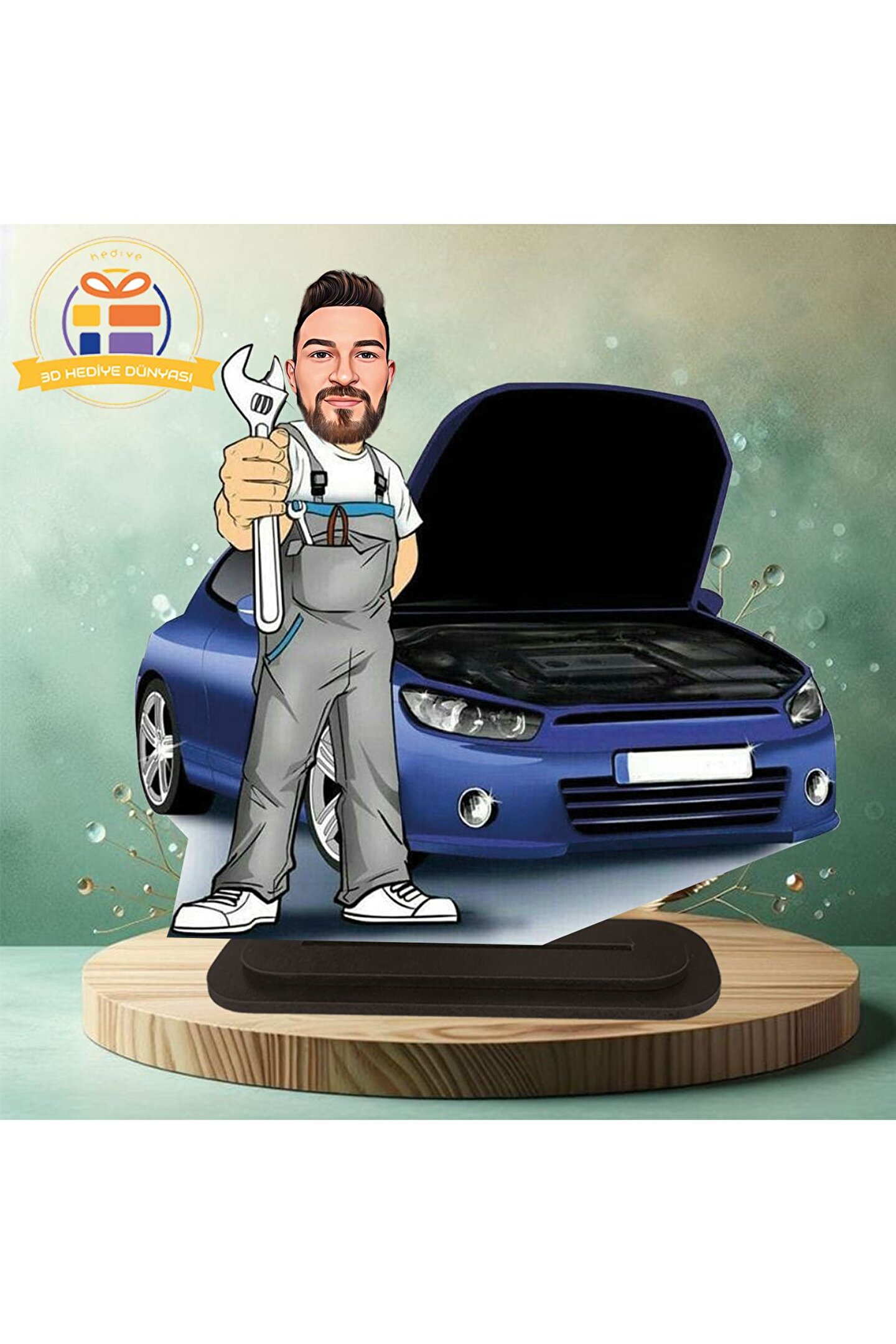 araba tamircisi oto bakım ustası karikatürü biblo hediye 3d masa üstü biblo hediyesi