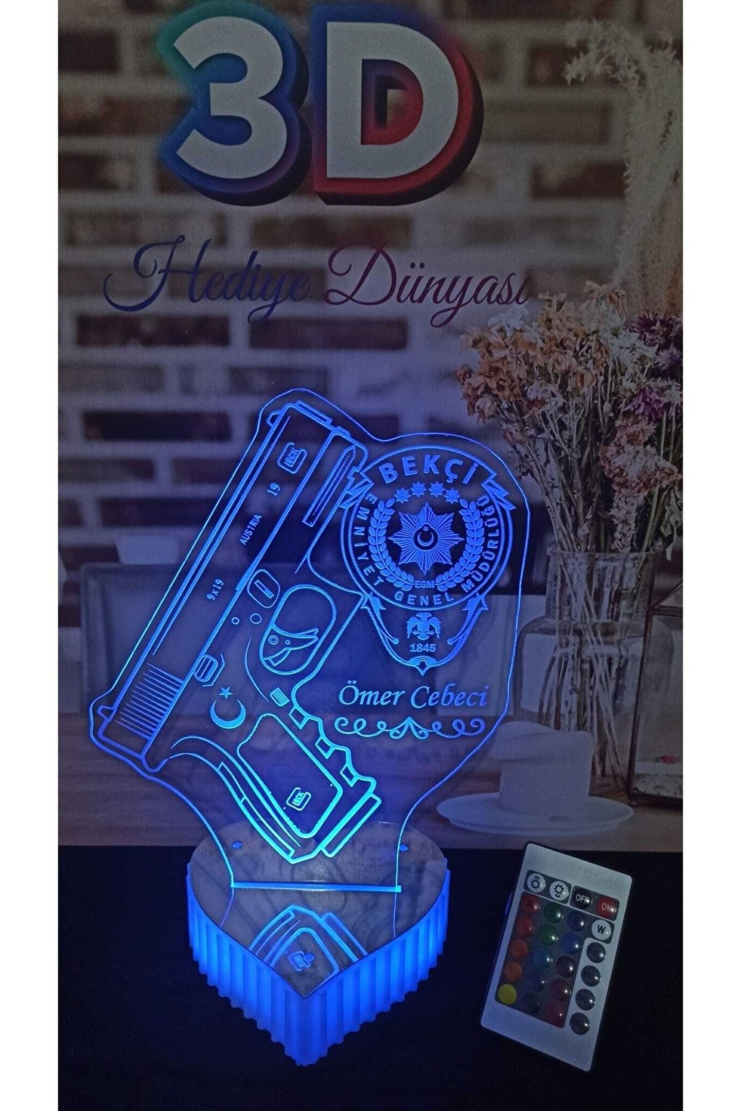 Bekçi Hediyesi Mahalle Bekçisi Özel Masa Lambası 16 Renkli Kumandalı