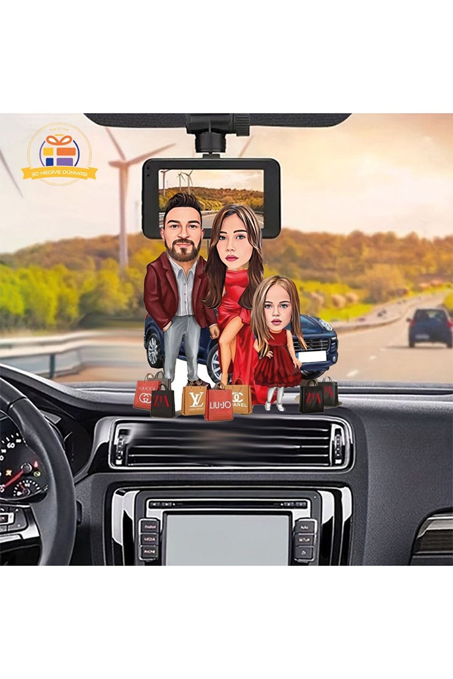 Dikiz ayna süsü Alışveriş den gelen aile karikatürlü biblo hediye 3d masa üstü biblo hediyesi