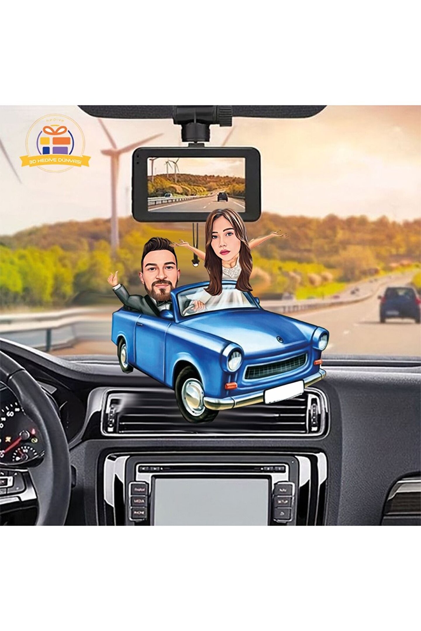 Dikiz ayna süsü Murat 131 arabalı gelin damat karikatürlü biblo hediye 3d masa üstü biblo hediyesi