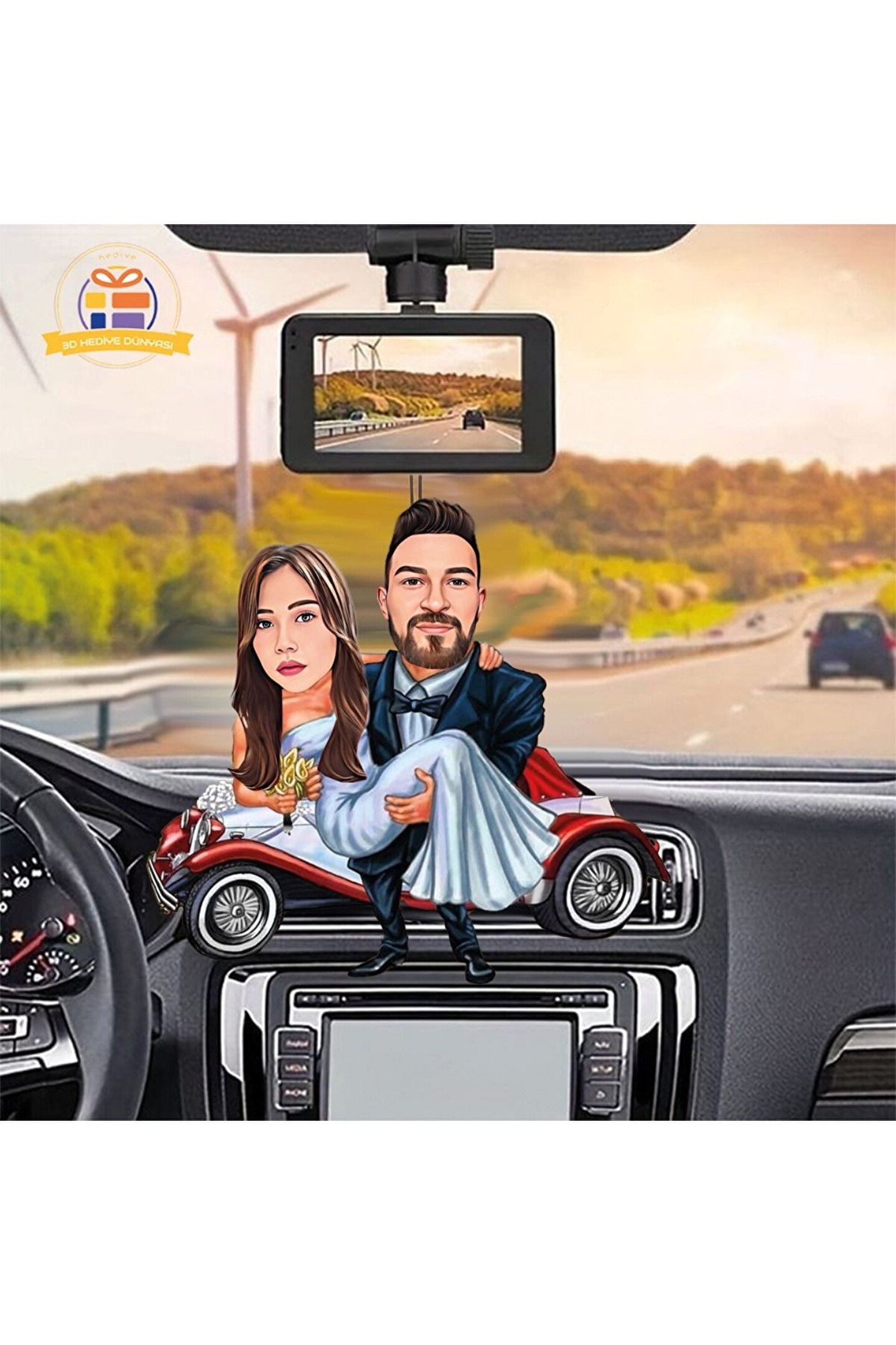 Dikiz ayna süsü Nostalji arabalı gelin damat karikatürlü biblo hediye 3d masa üstü biblo hediyesi