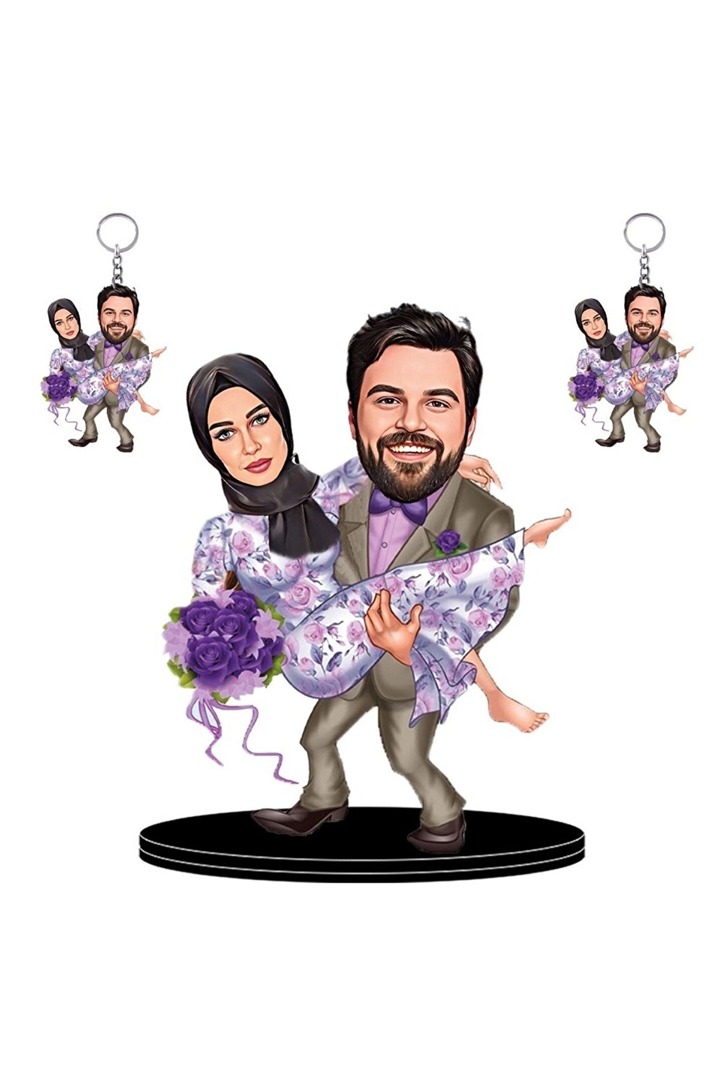 Eşime Özel Hediye Karikatür Biblo Hediyesi 2 Adet Anahtarlık Hediye