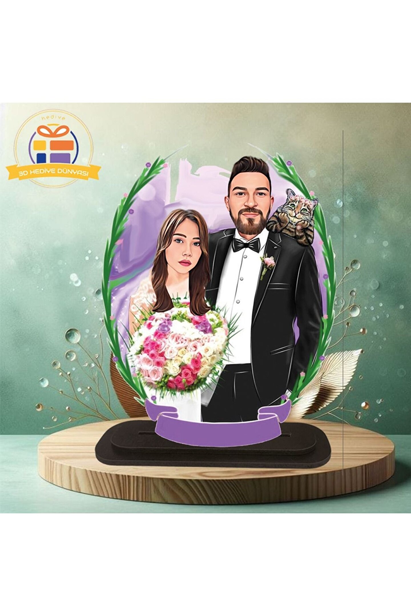 Gelin damat kedili karikatürlü biblo hediye 3d masa üstü biblo hediyesi