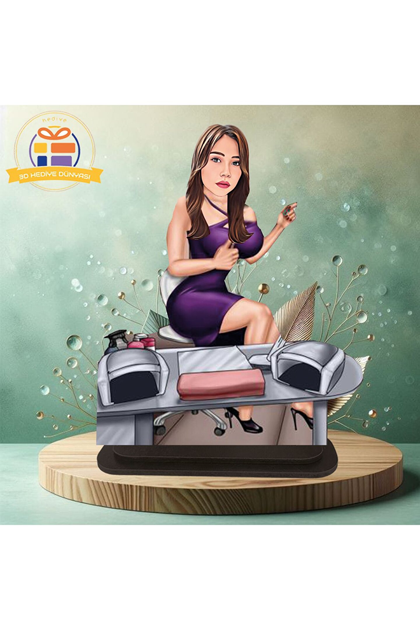 Güzellik salonu güzellik uzmanı karikatürü biblo hediye 3d masa üstü biblo hediyesi