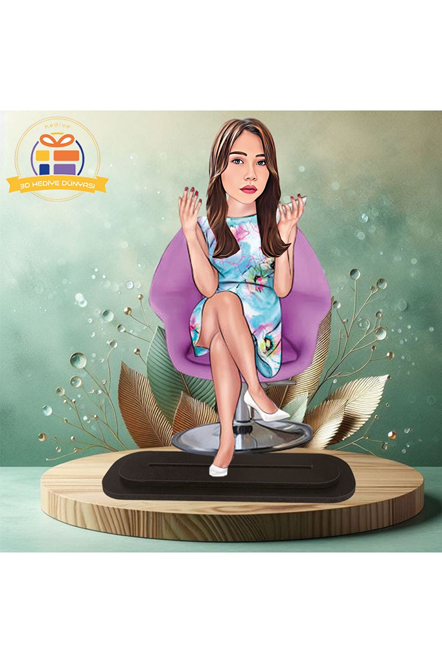 Güzellik salonu karikatür makyaj yapan karikatürü biblo hediye 3d masa üstü biblo hediyesi