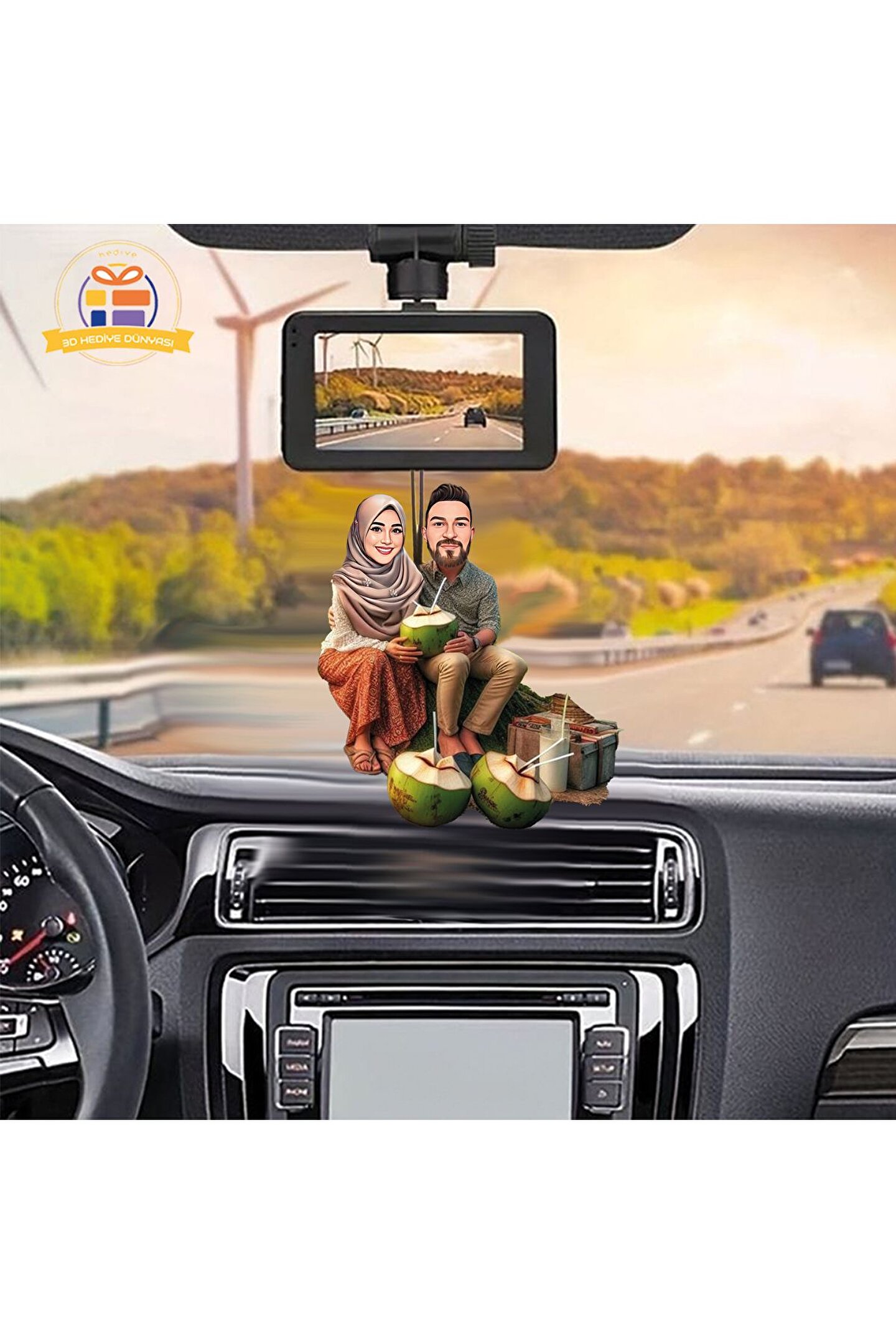 Hindistan cevizi içen tesettürlü sevgili Araba Dikiz ayna süsü