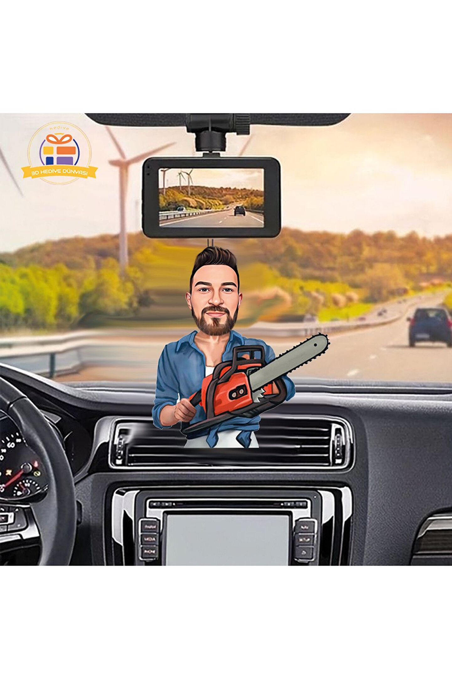 Hızar aletli çalışan adam karikatürü Araba Dikiz ayna süsü