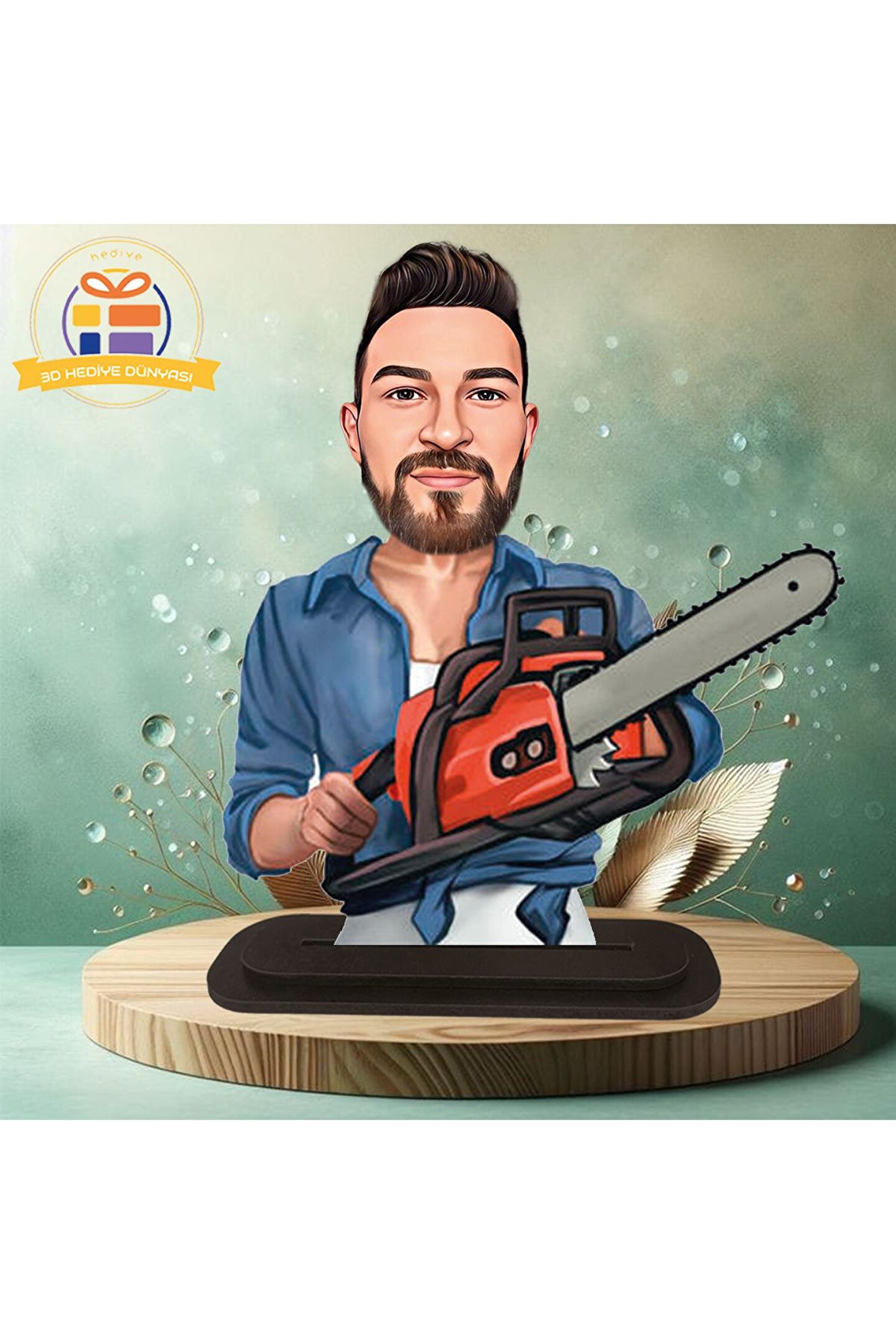 Hızar aletli çalışan adam karikatürü biblo hediye 3d masa üstü biblo hediyesi