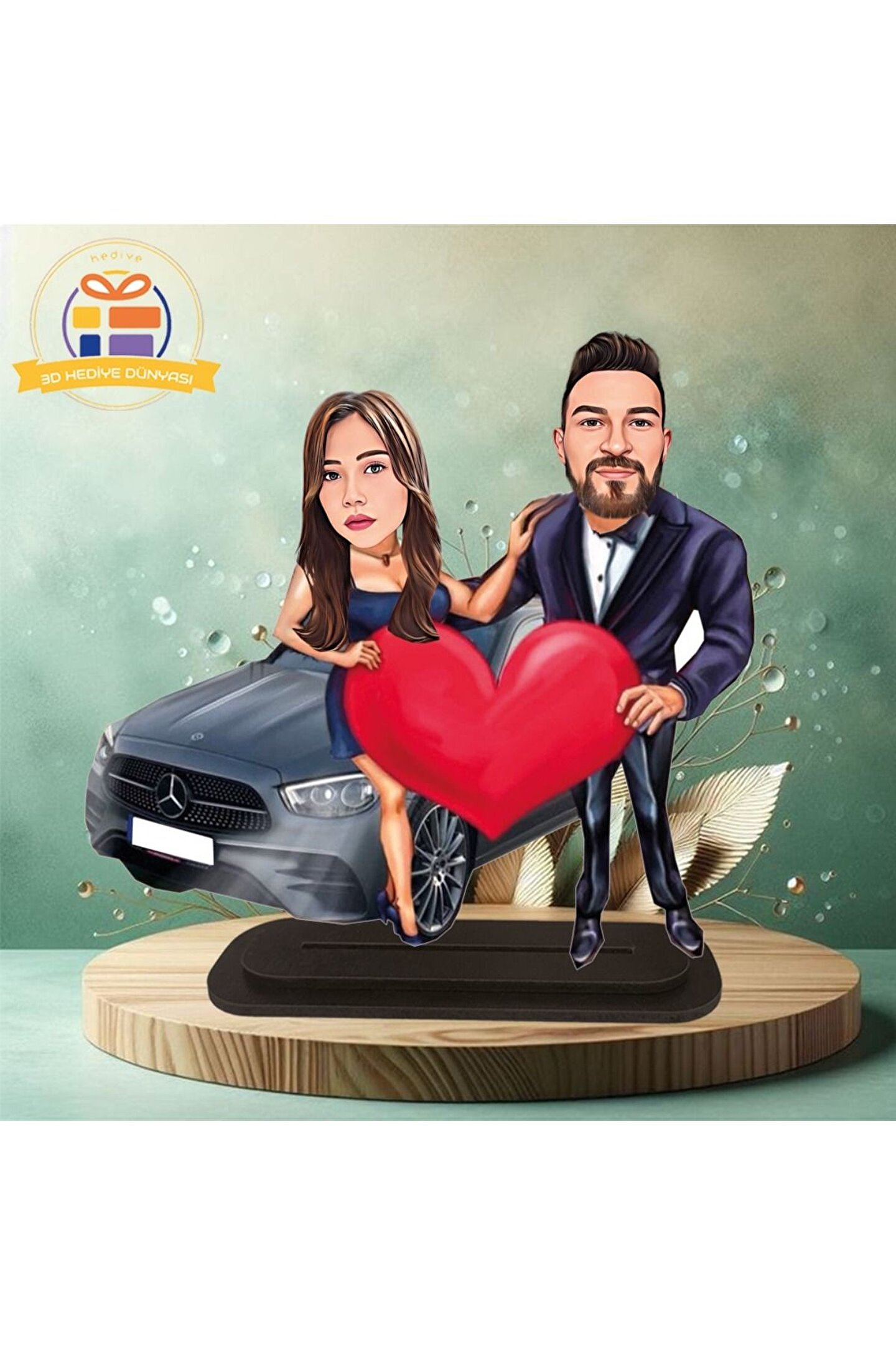 Kalpli sevgili karikatürlü biblo hediye 3d masa üstü biblo hediyesi