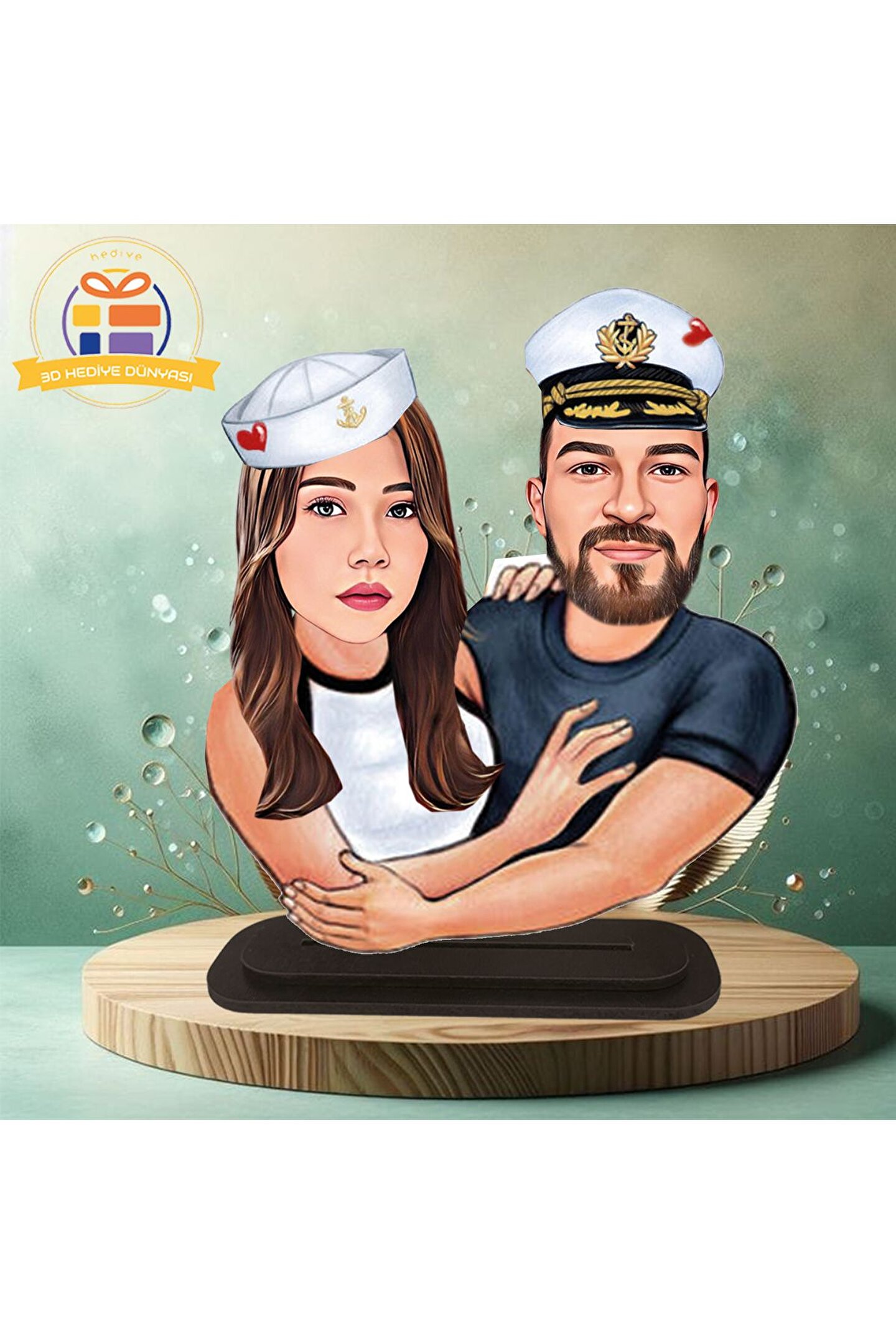 Kaptan çift resmi karikatürü Gemi kaptanı eşi ile karikatürü biblo hediyesi