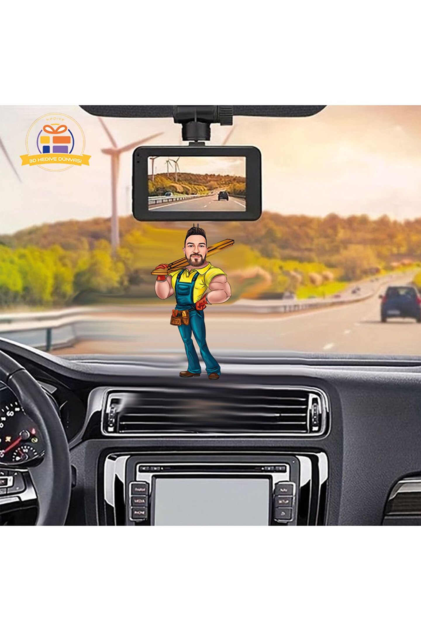 Kereste ustası karikatür marangoz ustası karikatürü Araba Dikiz ayna süsü