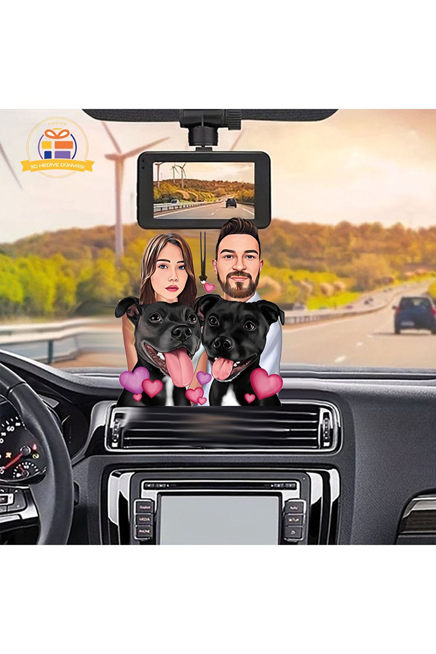 Köpekle aile pozu sevgili karikatürü Araba Dikiz ayna süsü