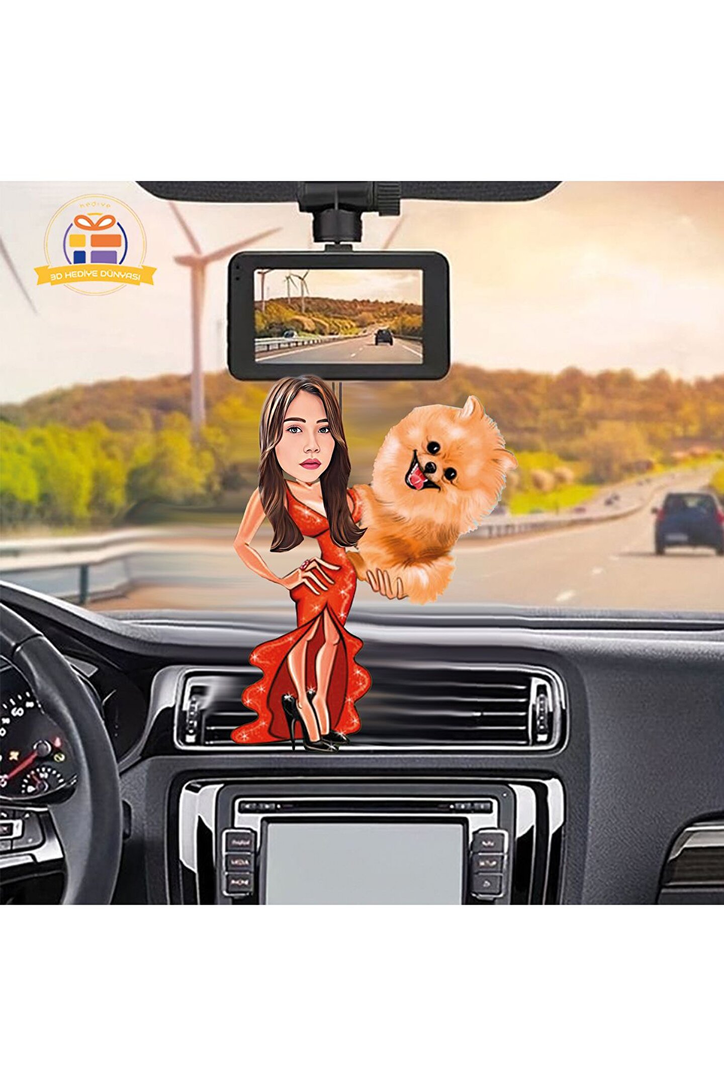 Köpekli pozu hayvan sever karikatürü Araba Dikiz ayna süsü