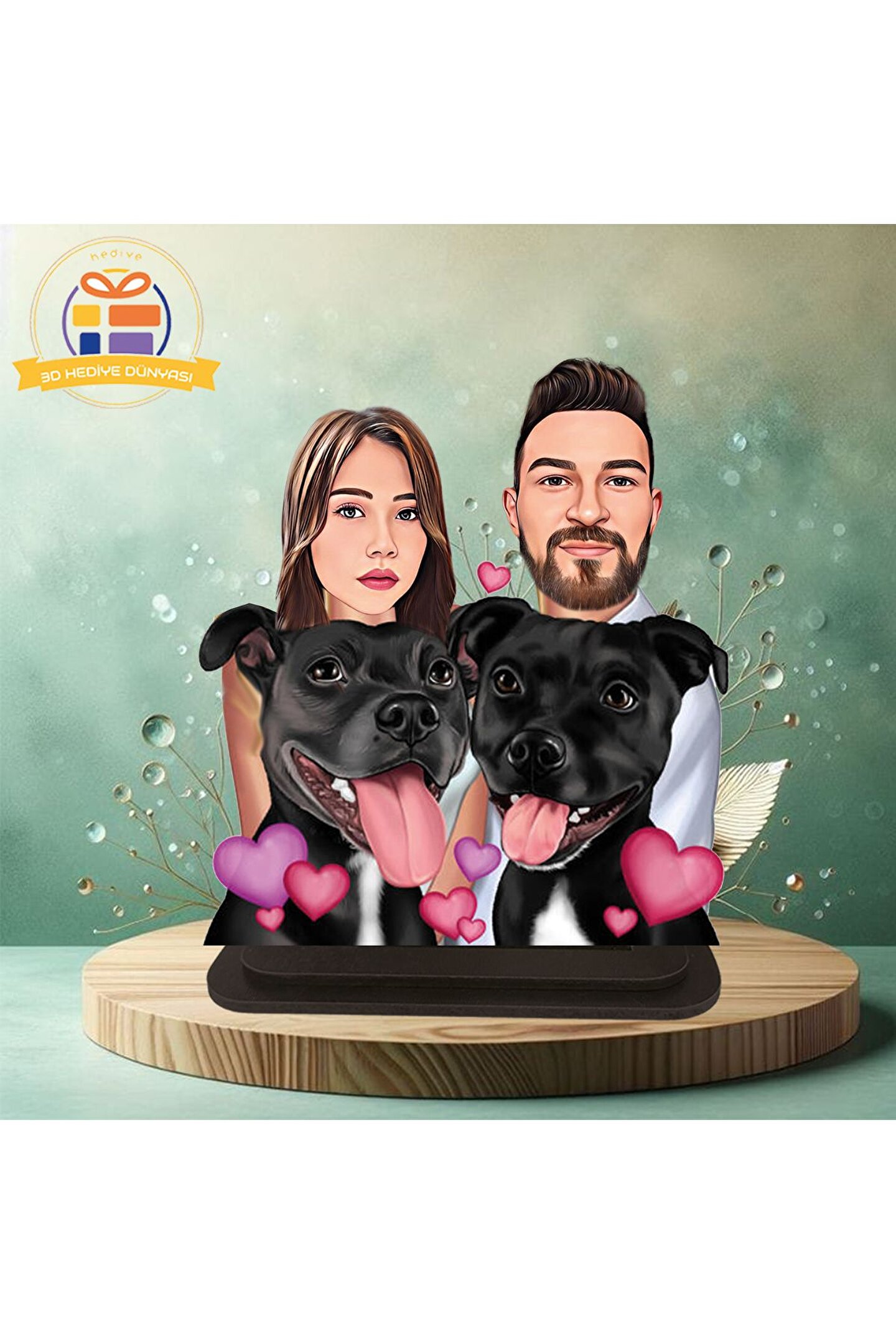 Köpekli sevgili karikatürü biblo hediye 3d masa üstü biblo hediyesi