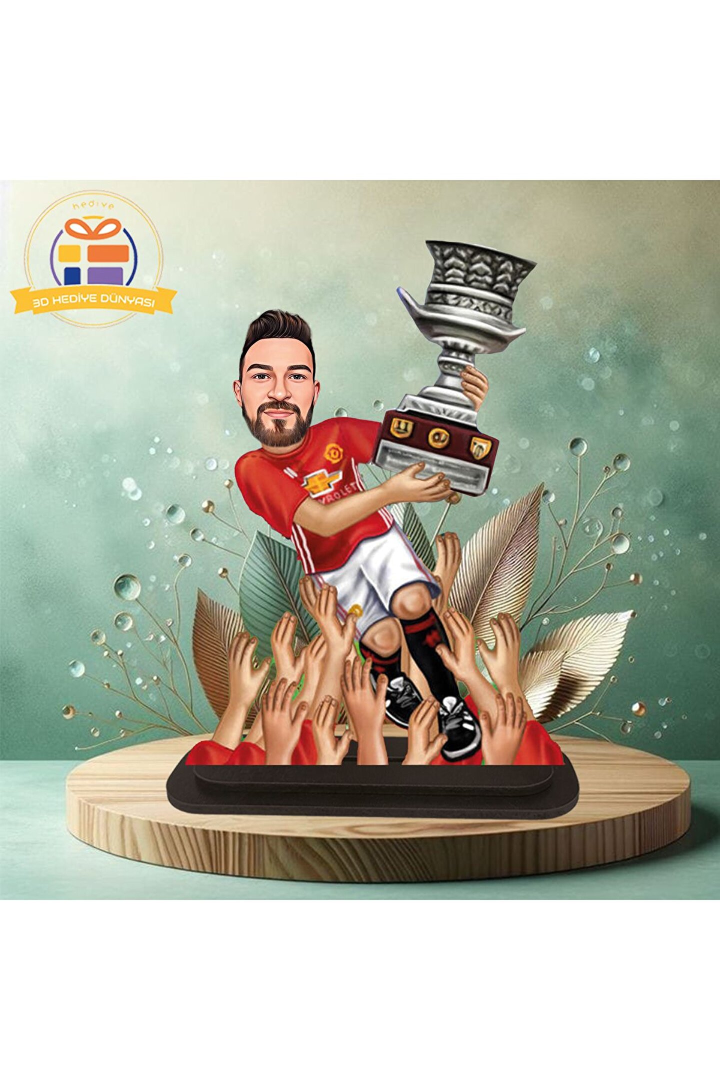 Kupayı kaldıran futbolcu karikatürü biblo hediye 3d masa üstü biblo hediyesi