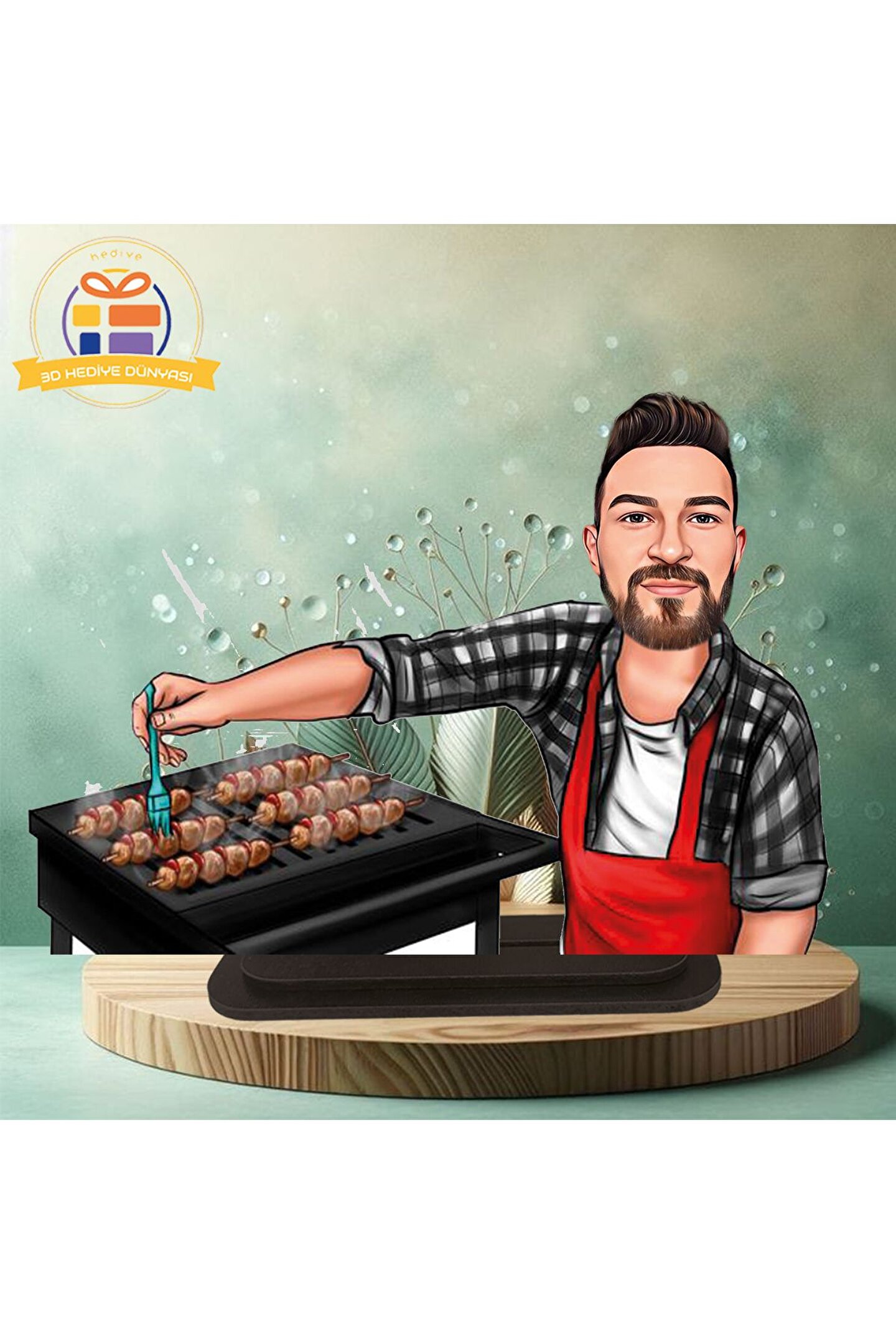 Mangal ustası baba mangal seven adam karikatürü karikatürü biblo hediye 3d masa üstü biblo hediyesi