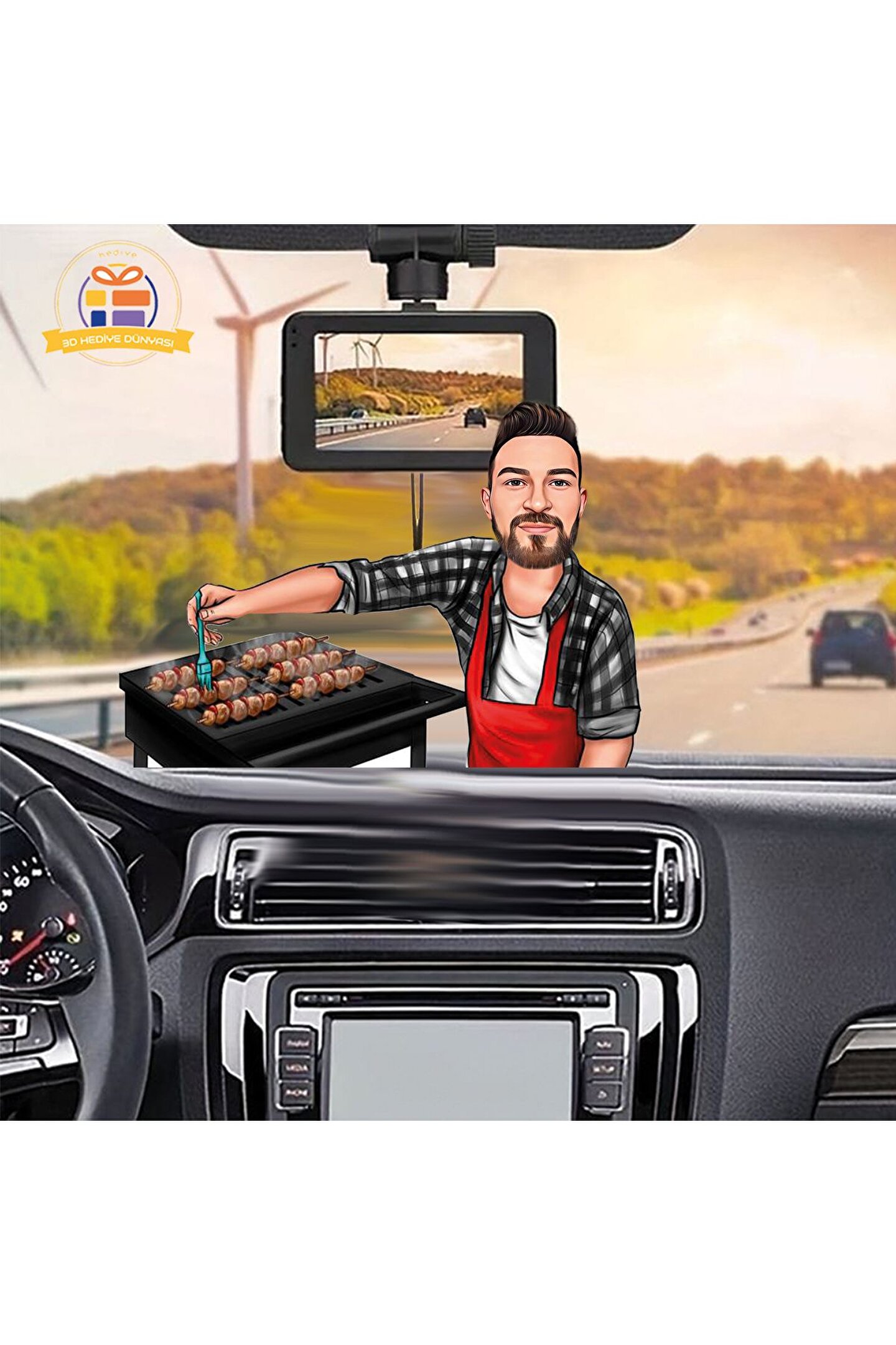 Mangalcı baba mangal seven adam karikatürü Araba Dikiz ayna süsü