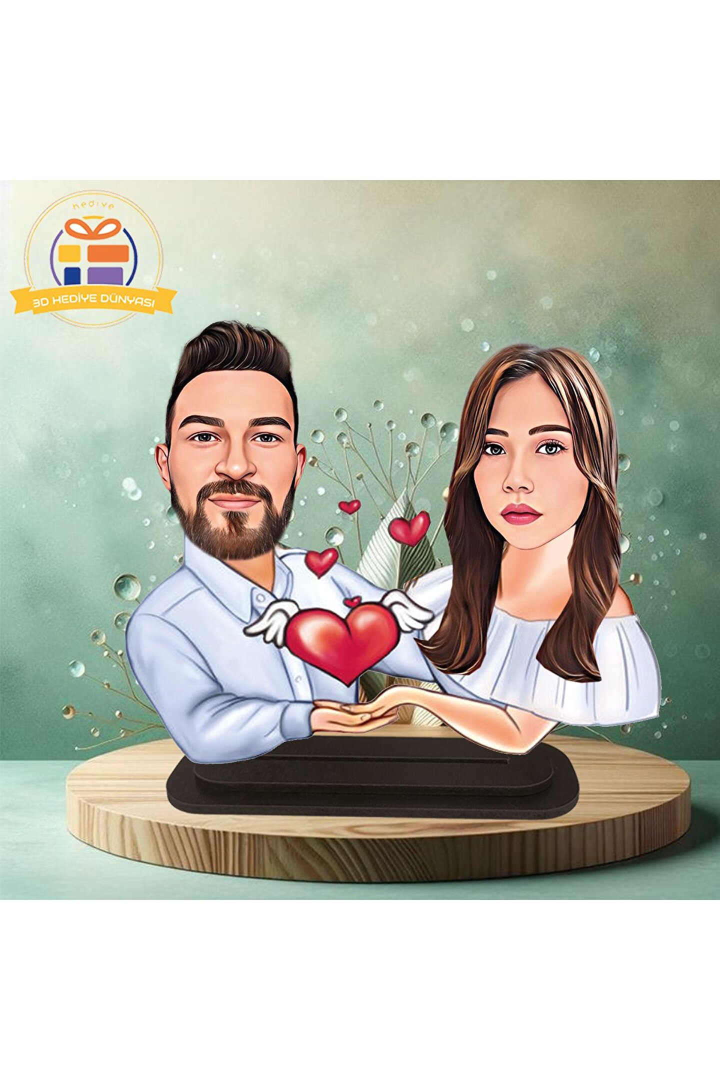 Melek kanatlı kalpli çift resmi karikatürü biblo hediye 3d masa üstü biblo hediyesi
