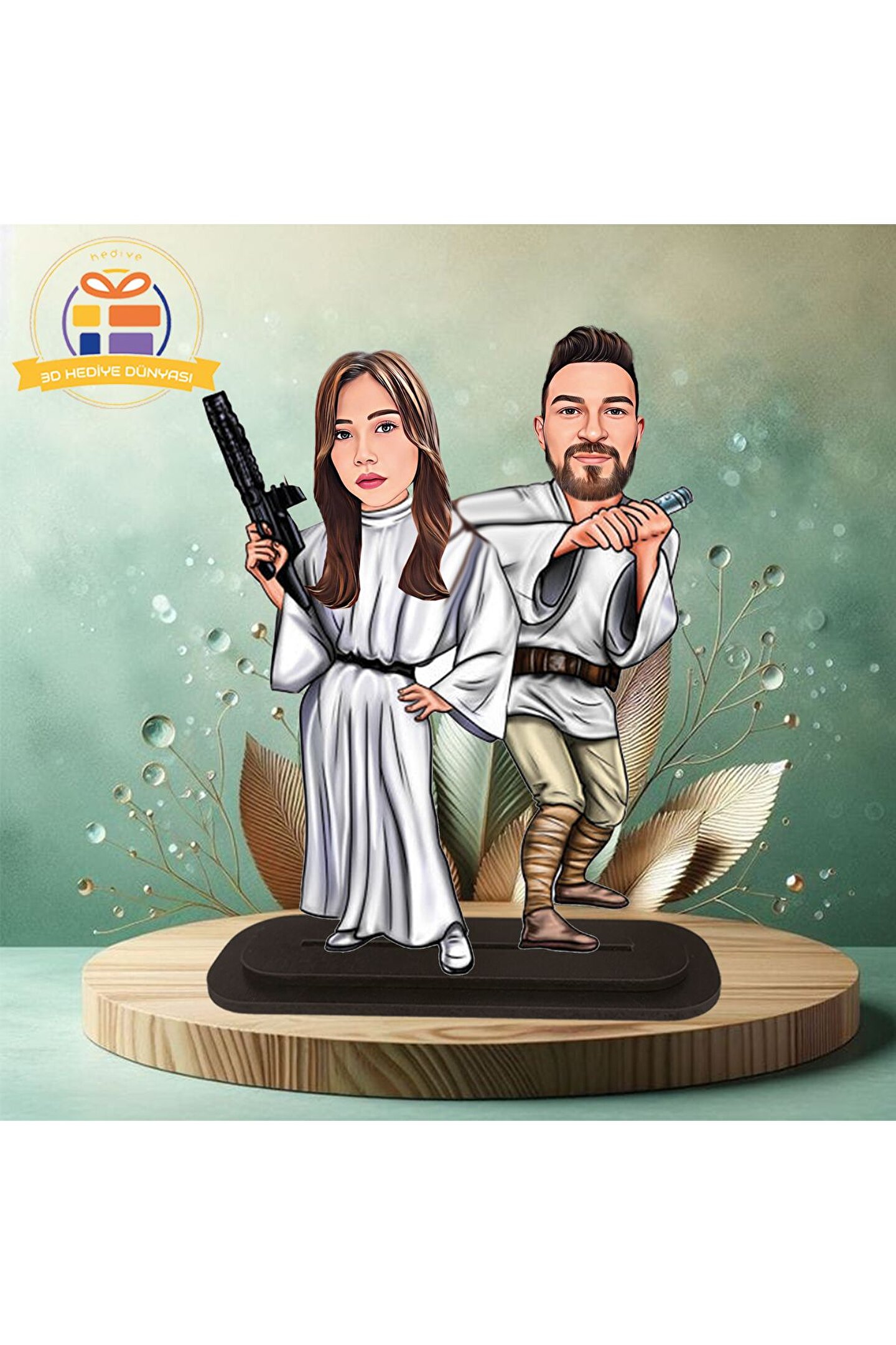 prenses leia ve luke sevgili aşk karikatürü biblo hediye 3d masa üstü biblo hediyesi