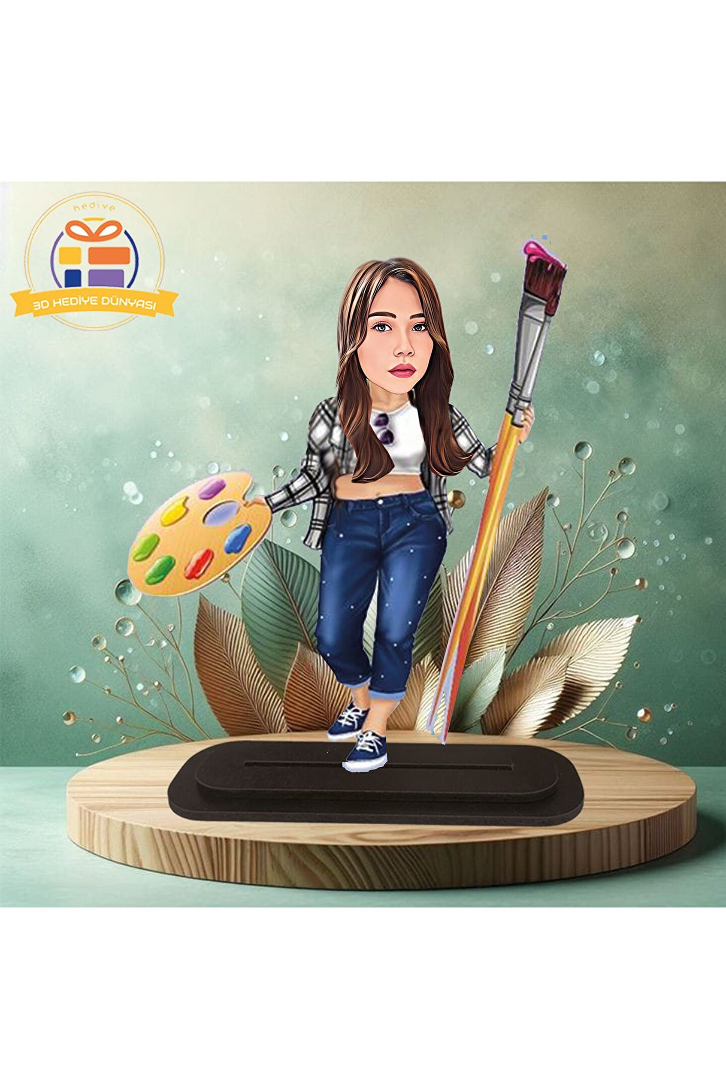 Ressam resim boyama yapan ressam karikatürü biblo hediye 3d masa üstü biblo hediyesi