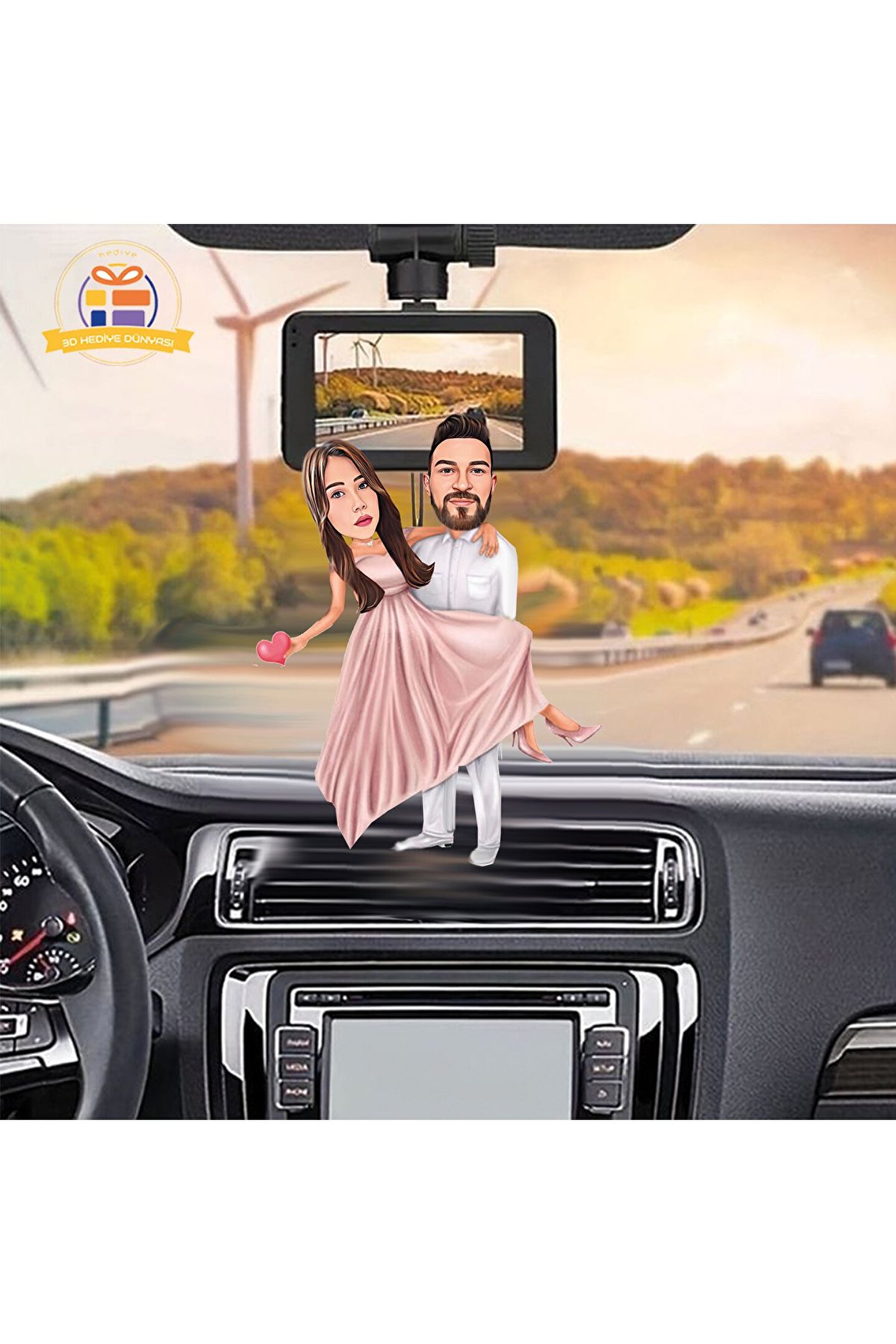 Romantik çift karikatürü Sevgili karikatürü Araba Dikiz ayna süsü